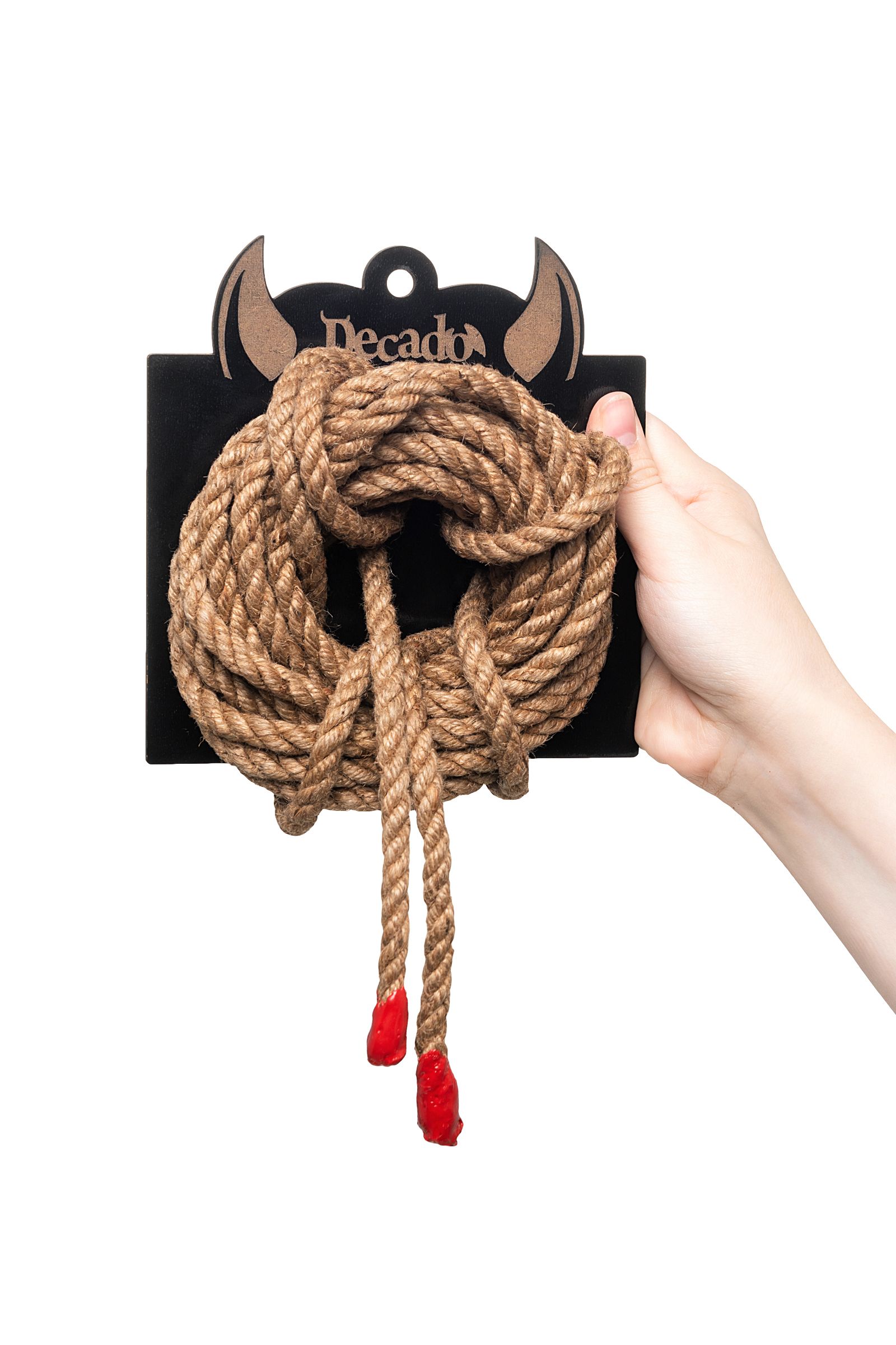 Джутовая веревка гарантированно вызовет мурашки по телу обоих партнеров. Этот классический предмет в БДСМ играх изготовлен по всем канонам искусства Шибари. Высококачественный материал натурального цвета практичен и не раздражает кожу. Веревка нежная, тактильно приятная, но в меру жесткая. Обработана, выварена вручную с применением гипоаллергенных материалов и готова к применению. Обладает теплым древесным ароматом, благодаря ароматизации афродизиаком. Концы веревки обработаны с помощью сургуча.