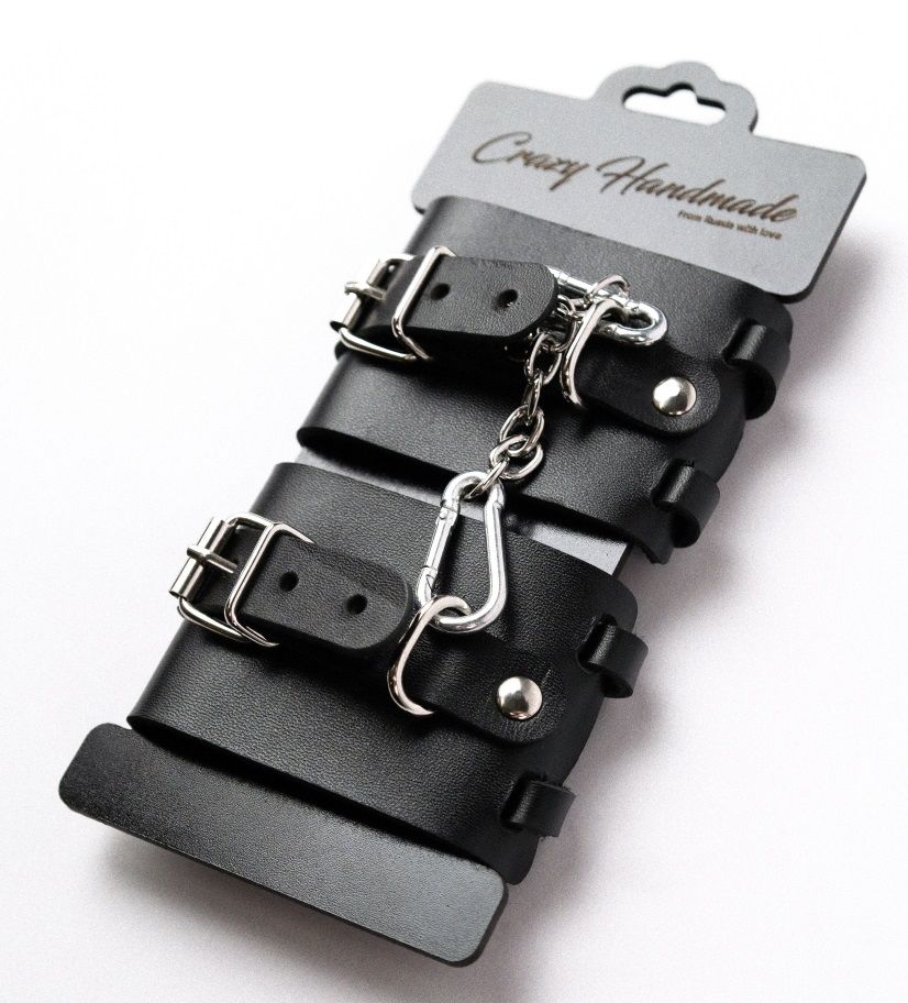 Черные кожаные наручники с ремешками - lovestoryshop.ru