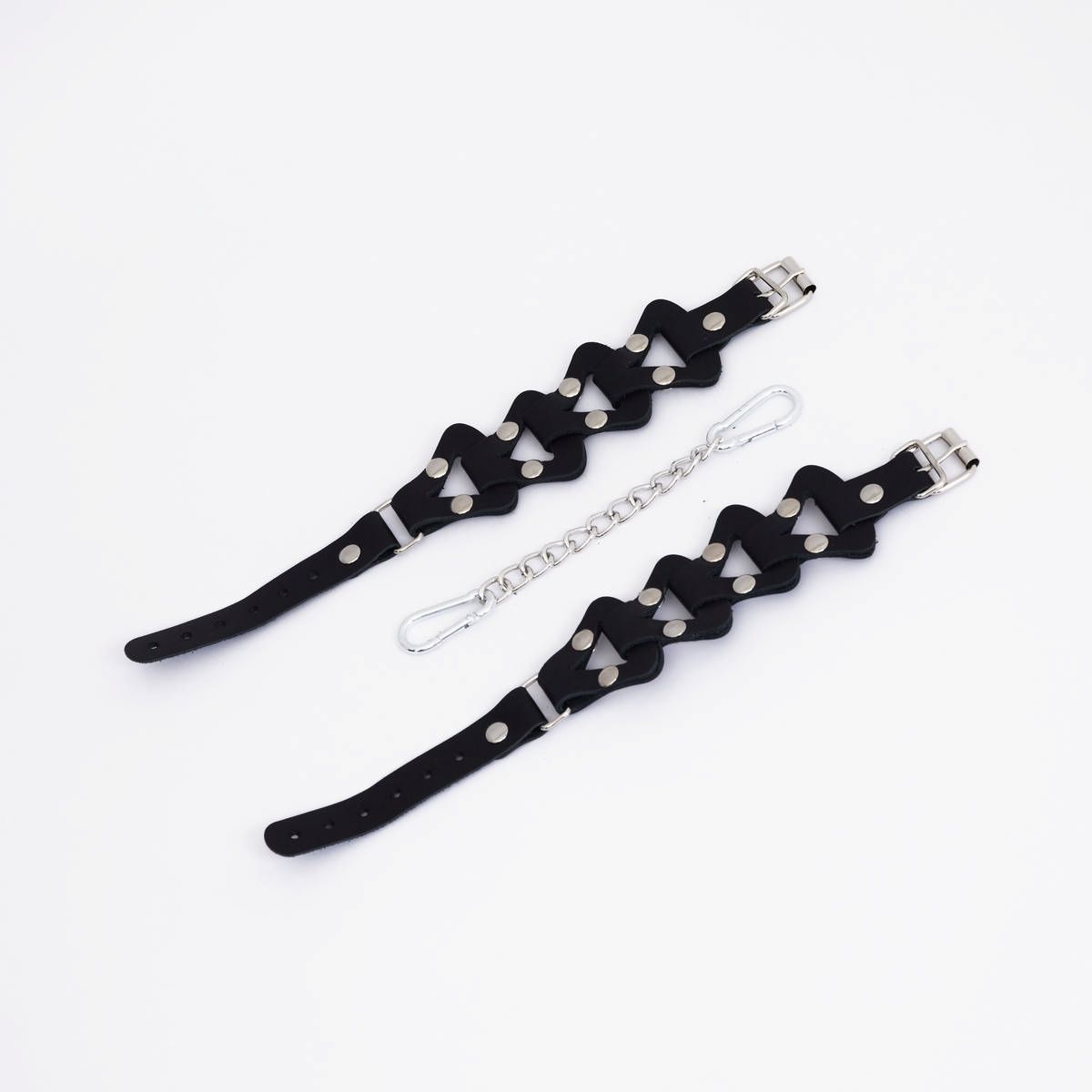 Изделие выполнено из мягких кожаных ремешков , которые комфортно облегают запястья или щиколотки, обеспечивая удобство даже при длительном использовании. Треугольная цепь плетения добавляет изделию элегантности и эротичности, подчеркивая красоту вашего тела. Минималистичный дизайн позволяет использовать их не только для фиксации в любовных играх, но и как стильный аксессуар, который украсит ваш повседневный или вечерний образ.