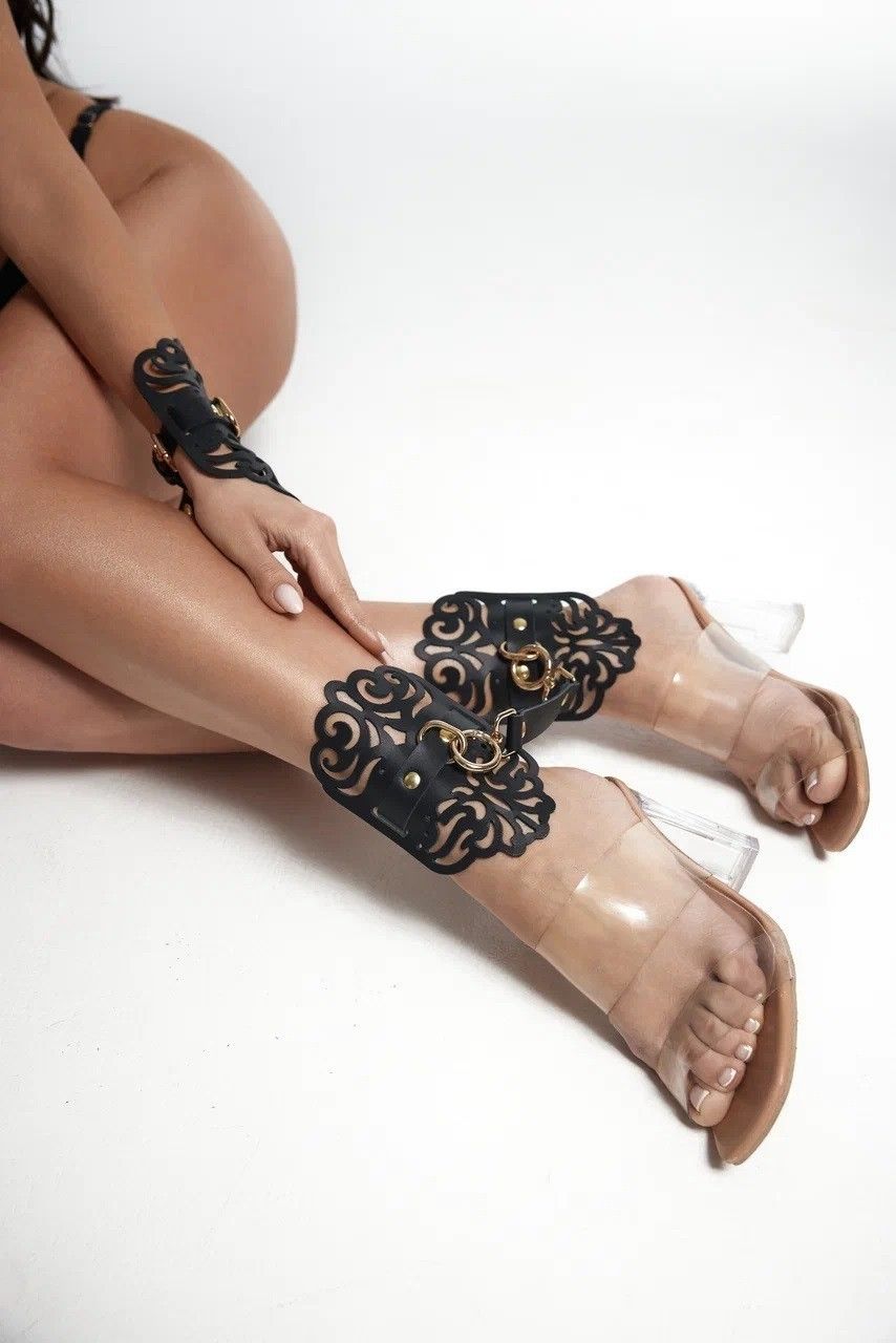 Черный фигурные оковы с золотистой фурнитурой - lovestoryshop.ru