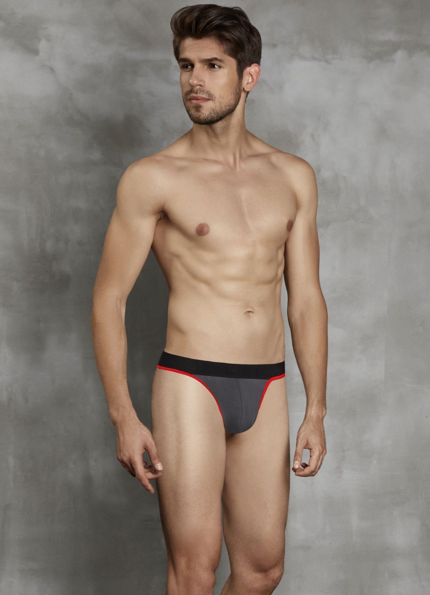 ОписаниеМужские стринги на пришивной резинке от «Doreanse». Края передней панели, низ пришивной резинки и задняя лямочка украшены контрастным эластичным кантом. Передняя панель однослойная, без подкладки.