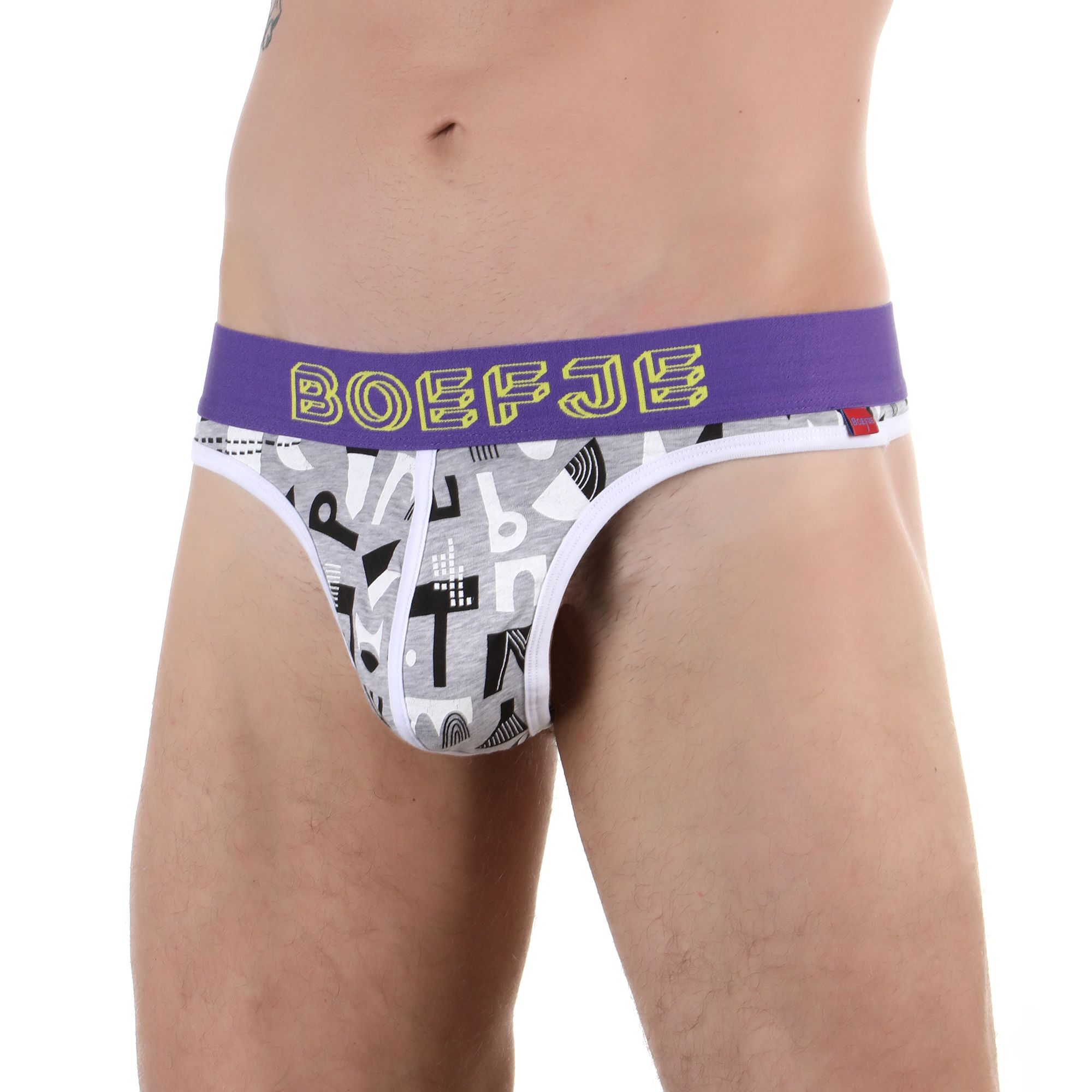 ОписаниеСексуальные серые трусы-тонги с принтом в виде букв.