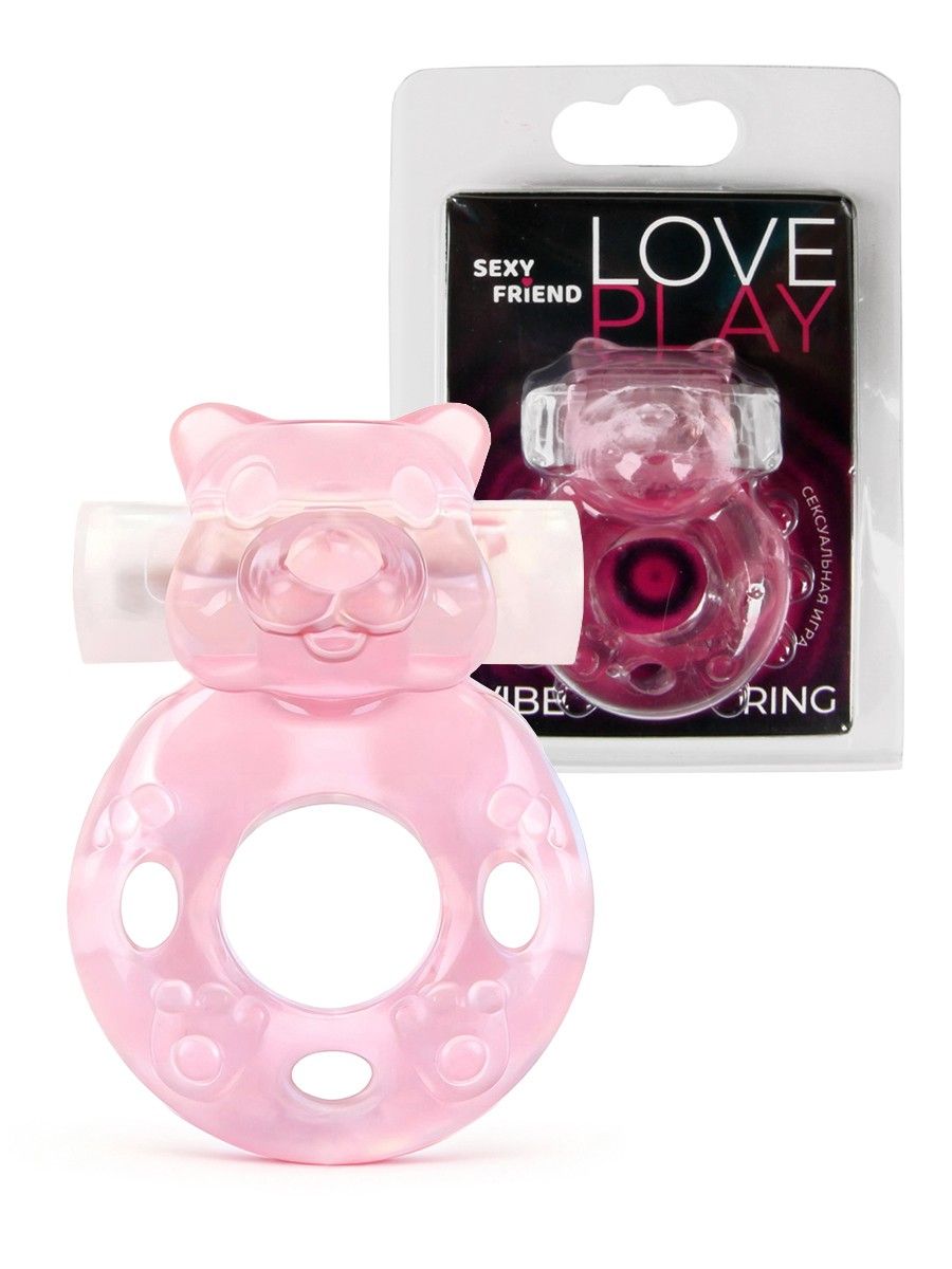 Розовое эрекционное виброкольцо в форме мишки - lovestoryshop.ru