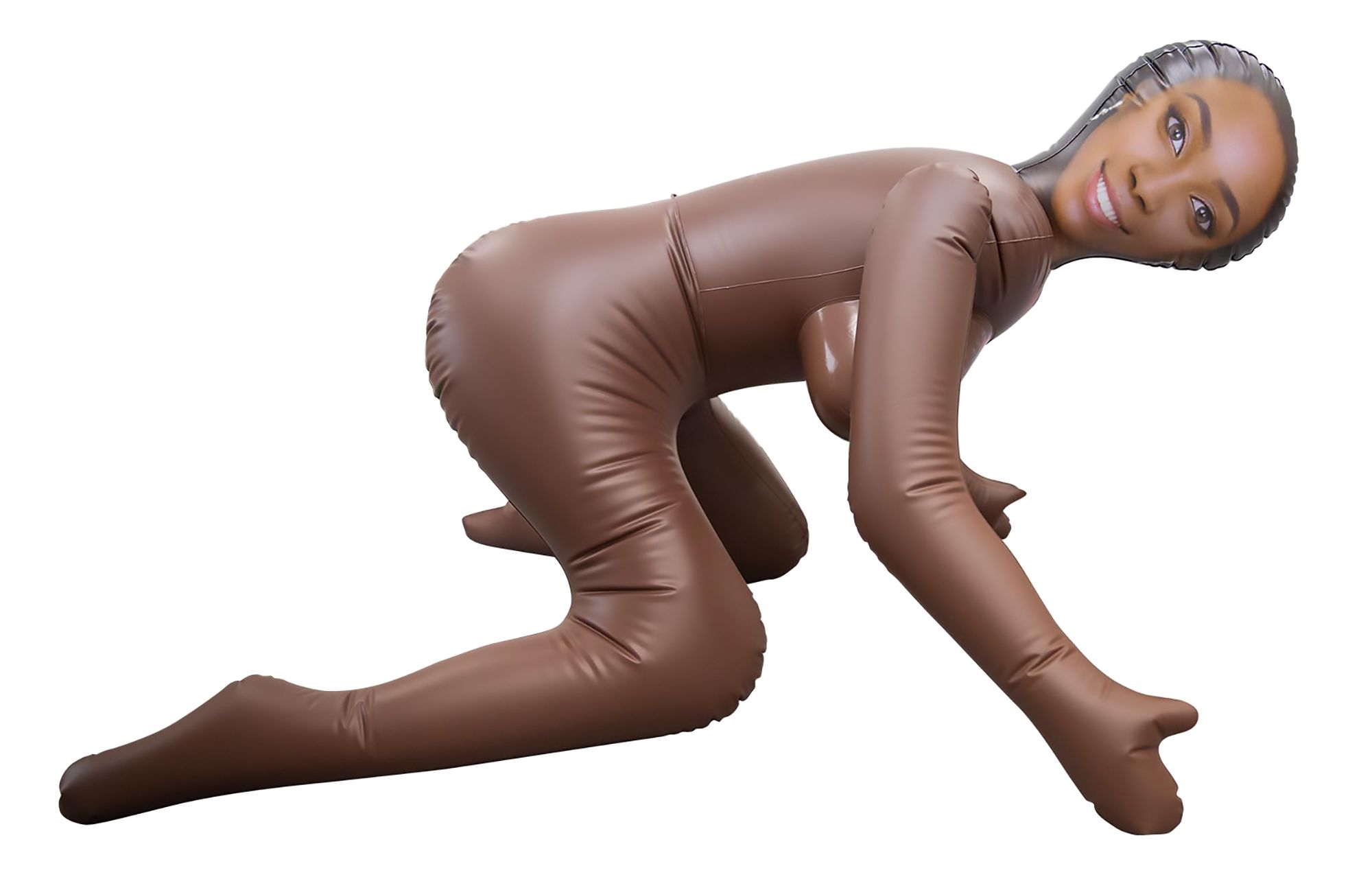 Темнокожая надувная секс-кукла. В позиции догги-стайл. 2 любовных отверстия. Высота - 54 см.