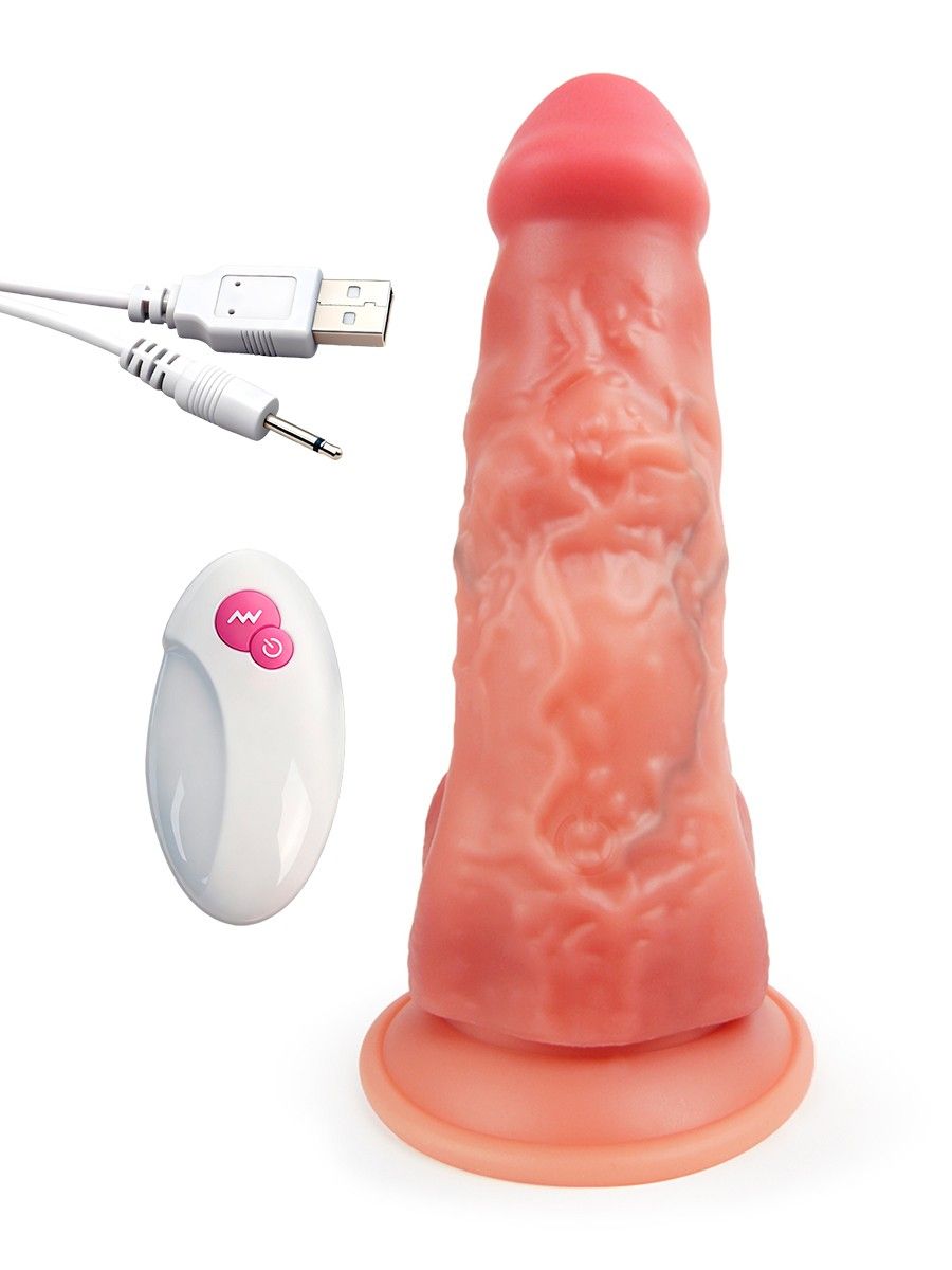 Телесный вибратор-реалистик с пультом ДУ - 25 см.