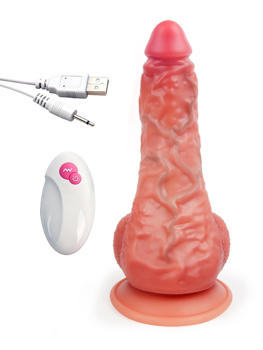 Телесный вибратор-реалистик с пультом ДУ - 24 см.