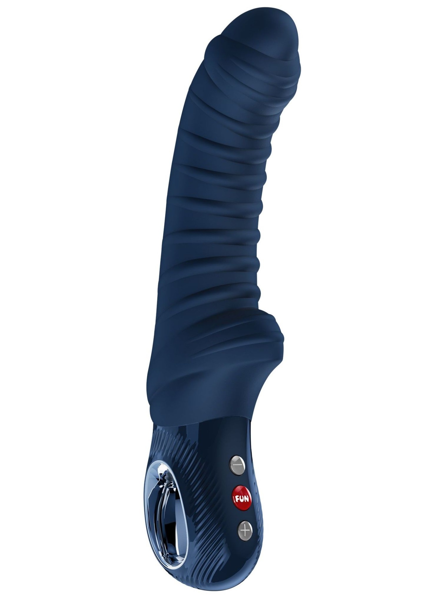 Синий вибратор Tiger с ребрышками - 22,5 см. - lovestoryshop.ru