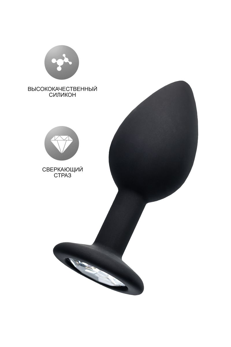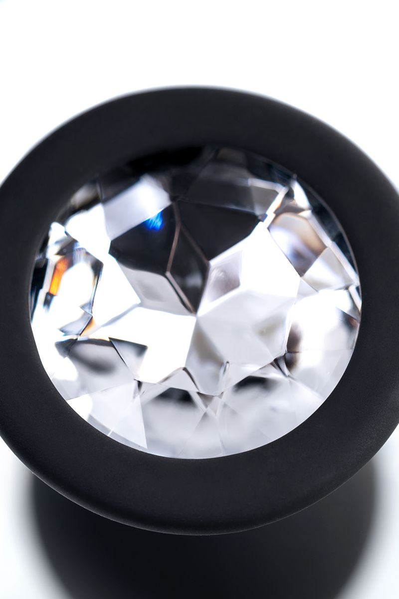 Черная анальная втулка с прозрачным стразом - 7,2 см.
