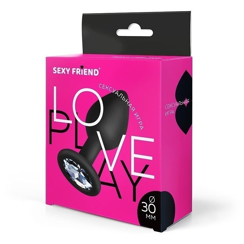 Черная силиконовая анальная втулка с прозрачным кристаллом - 7,3 см.