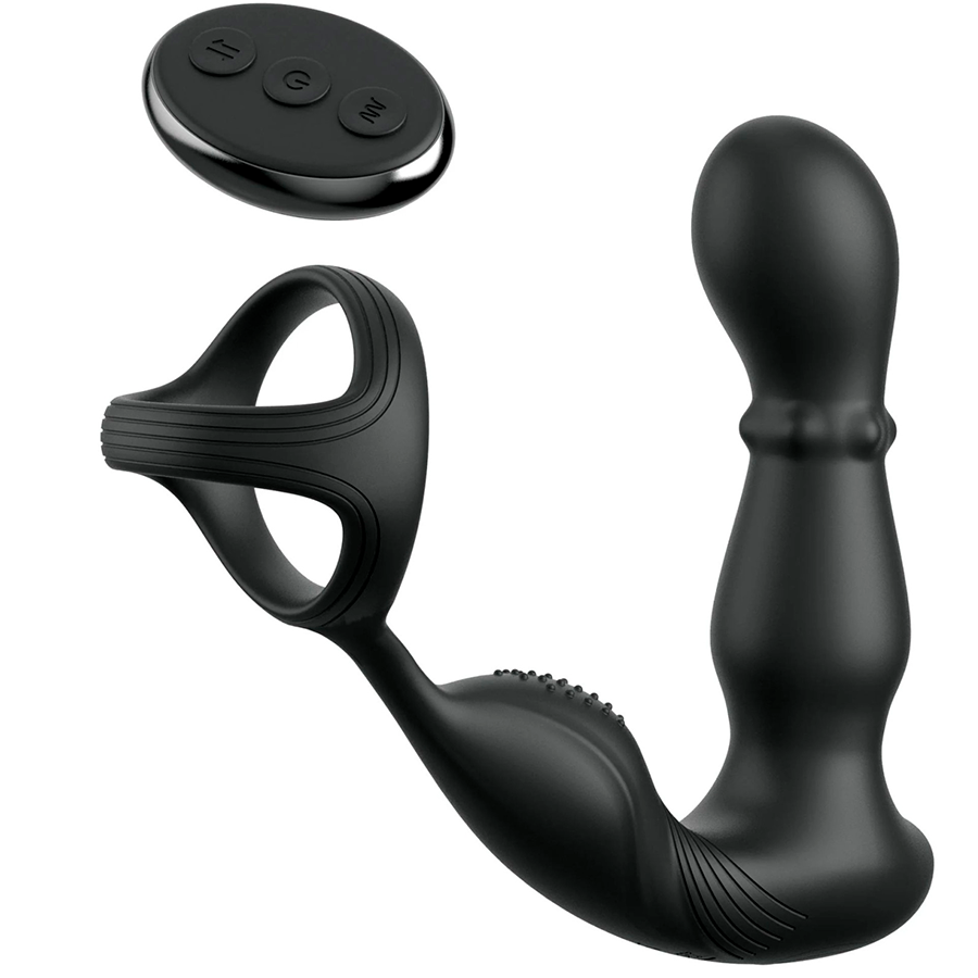Стимулятор простаты с вибрацией эрекционным кольцом и пультом Ass-gasm Slide Glide чёрный