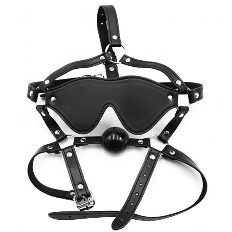 Сплошная маска-шоры с регулируемыми ремешками и кляпом-шариком. Диаметр шарика - 4 см.