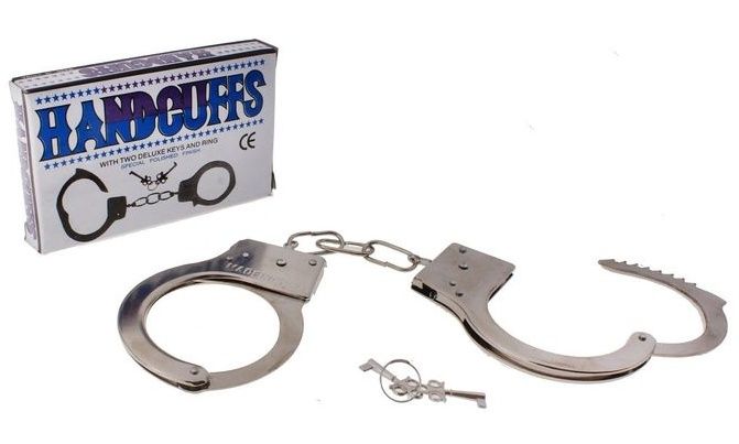 Небольшие наручники на сцепке, дающей небольшую свободу в движении руками. Открываются с помощью ключа.