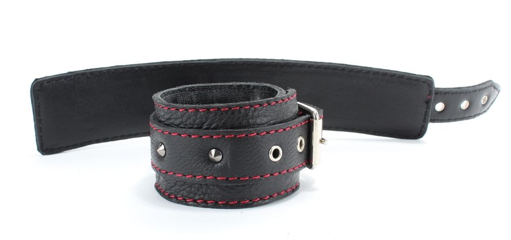 Черные оковы с шипами и контрастной строчкой