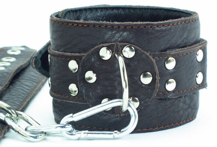 Коричневые оковы из мягкой кожи на металлической цепочке