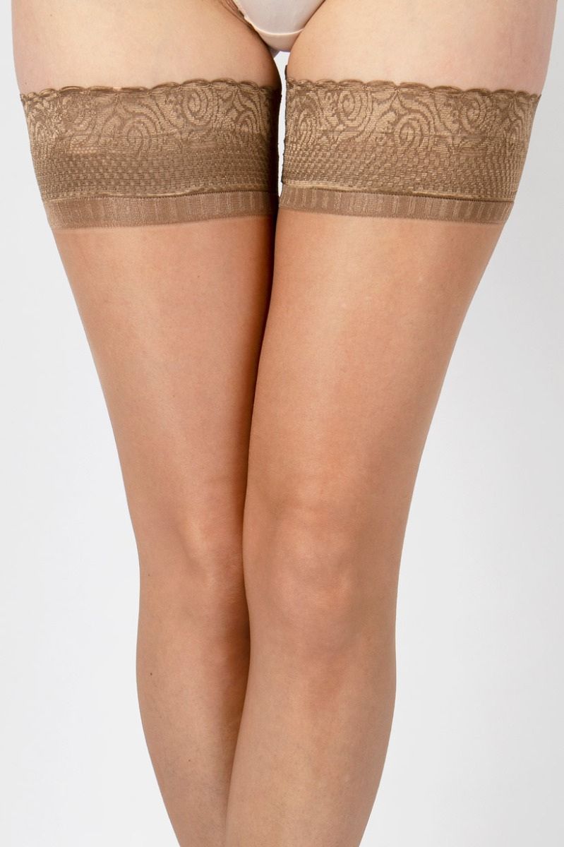 ОписаниеЧулки на силиконе с блеском, красивая кружевная резинка, прозрачный мысок. Плотность - 10 ден.