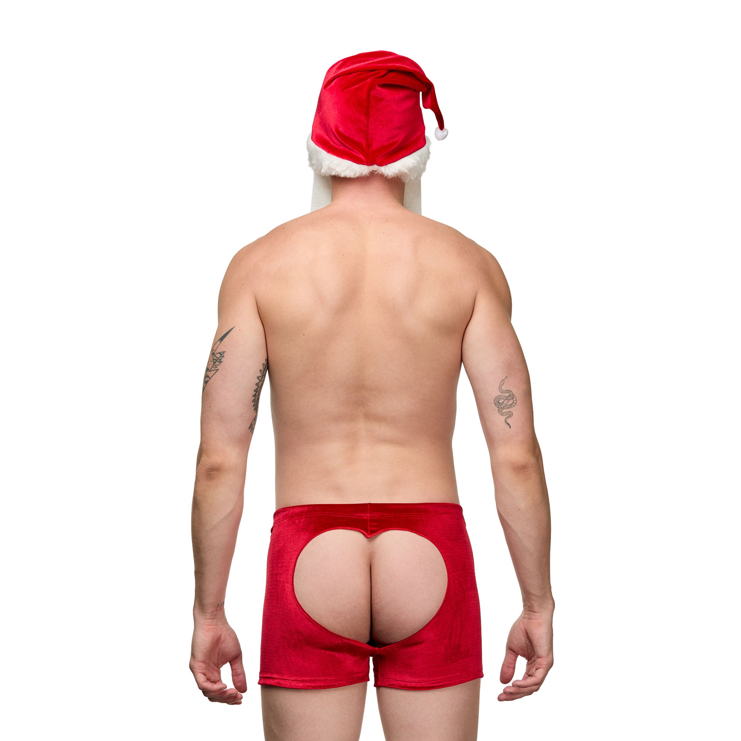 Мужской костюм «Дед Мороз» состоит из 2 предметов: боксеров с вырезом сзади и шапки с бородой. В комплекте: трусы-боксеры, шапка с бородой.