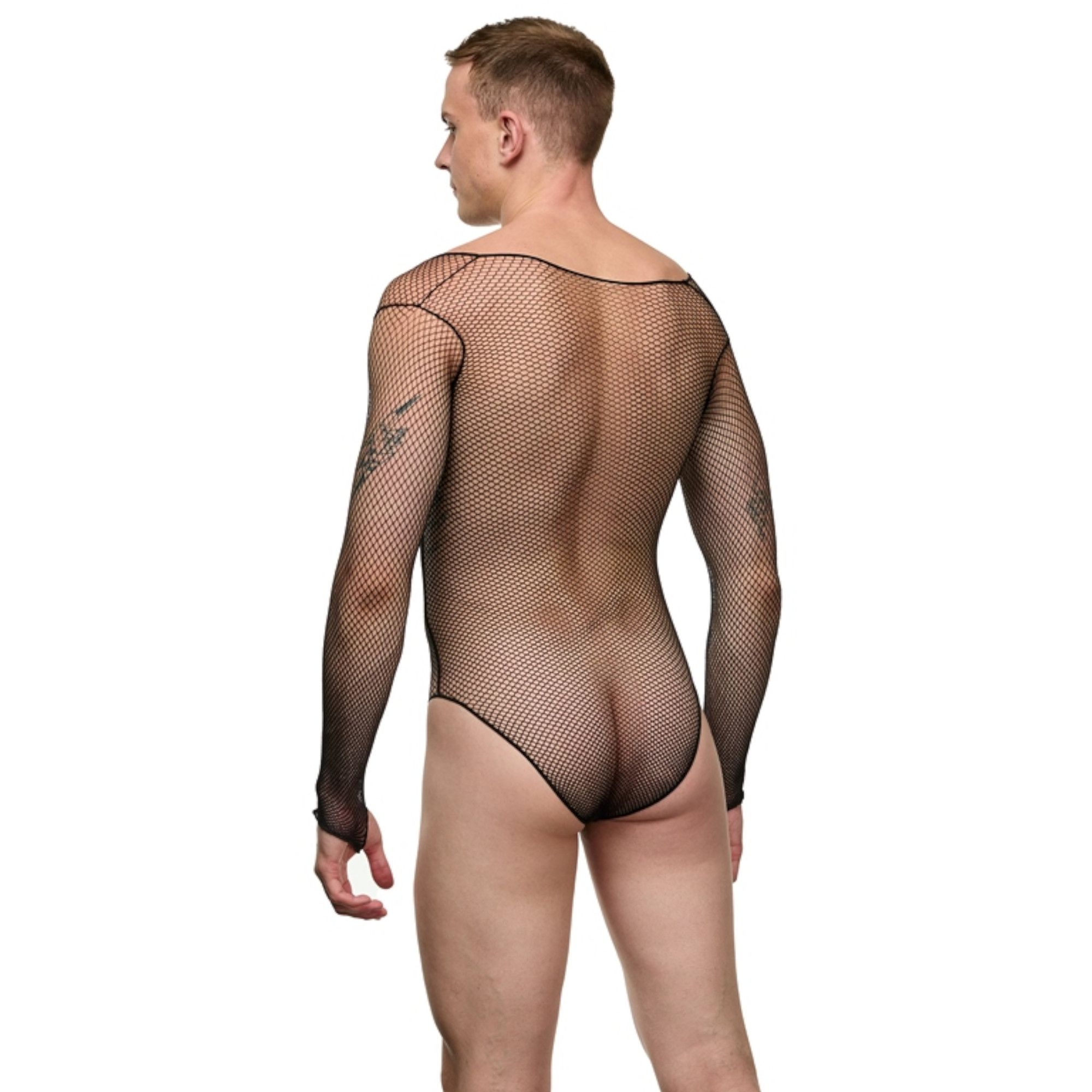 Мужское боди-сетка с длинным рукавом