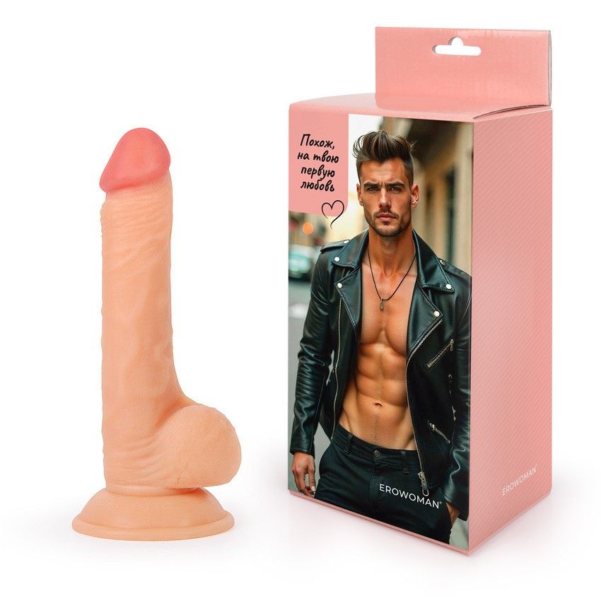 Телесный фаллоимитатор с мошонкой и присоской - lovestoryshop.ru