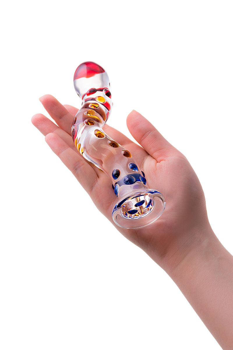 Изогнутый стеклянный фаллос с объемными точками - 20 см.