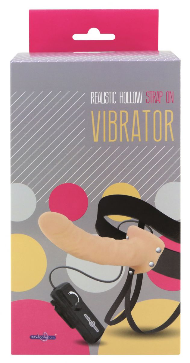 Полый страпон телесного цвета с встроенным вибратором - 20 см.