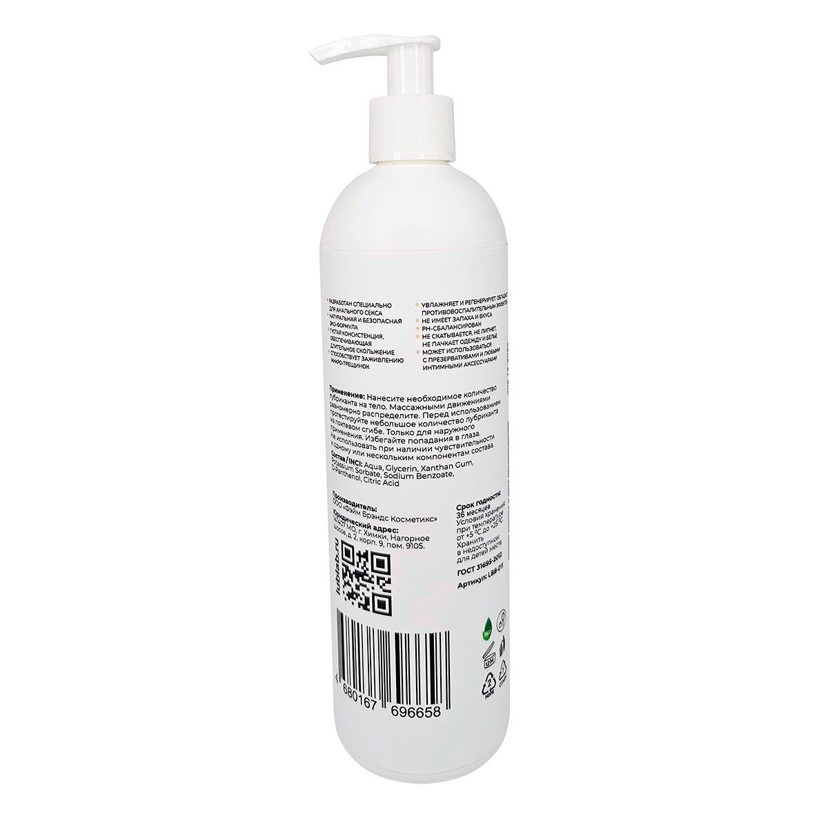 Лубрикант LUBLab, объемом в 500 мл, идеально подходит для анального секса, обеспечивая густое и длительное скольжение во время близости. D-пантенол в составе обеспечивает легкий регенерирующий эффект - заживление мелких травм кожи и слизистых.
