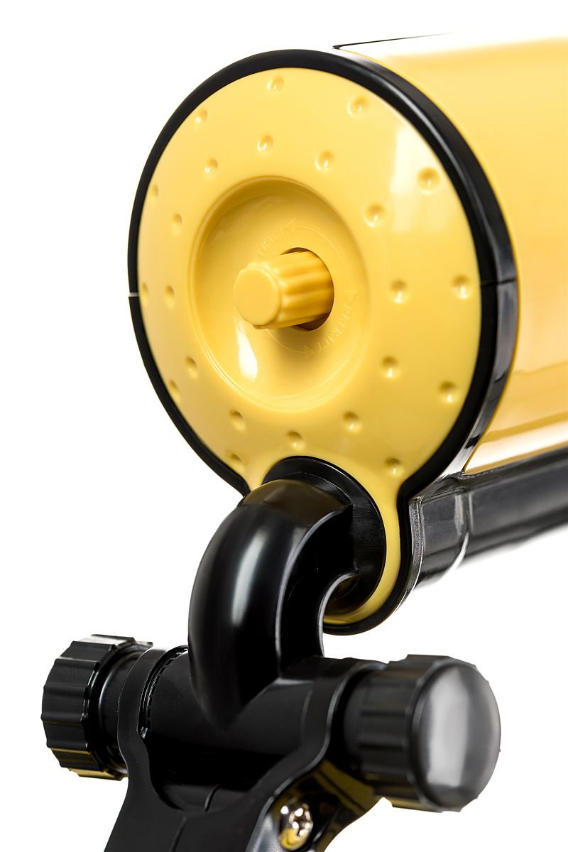 В корпус устанавливается фаллоимитатор из мягкого термопластичного эластомера. Фаллоимитатор выполнен в реалистичном стиле и ярком, желтом цвете, имеет длину 14 см и максимальный диаметр 3,5 см. Особенности игрушки: Секс-машина имитирует фрикции. У этой модели 3 скорости воздействия до 190 движений в минуту.