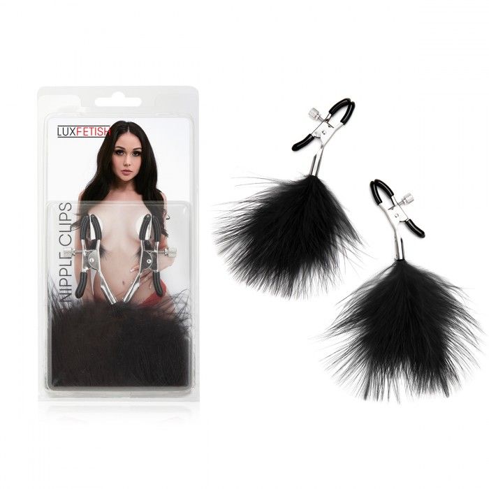 Зажимы для сосков регулируются по степени сжатия, поэтому вы сами сможете настроить комфортный для вас уровень воздействия. Сами зажимы покрыты эластичной резиной, чтобы не вызывать дискомфорта. На кончиках расположены мягкие пёрышки, которые будут нежно щекотать кожу во время использования аксессуара.