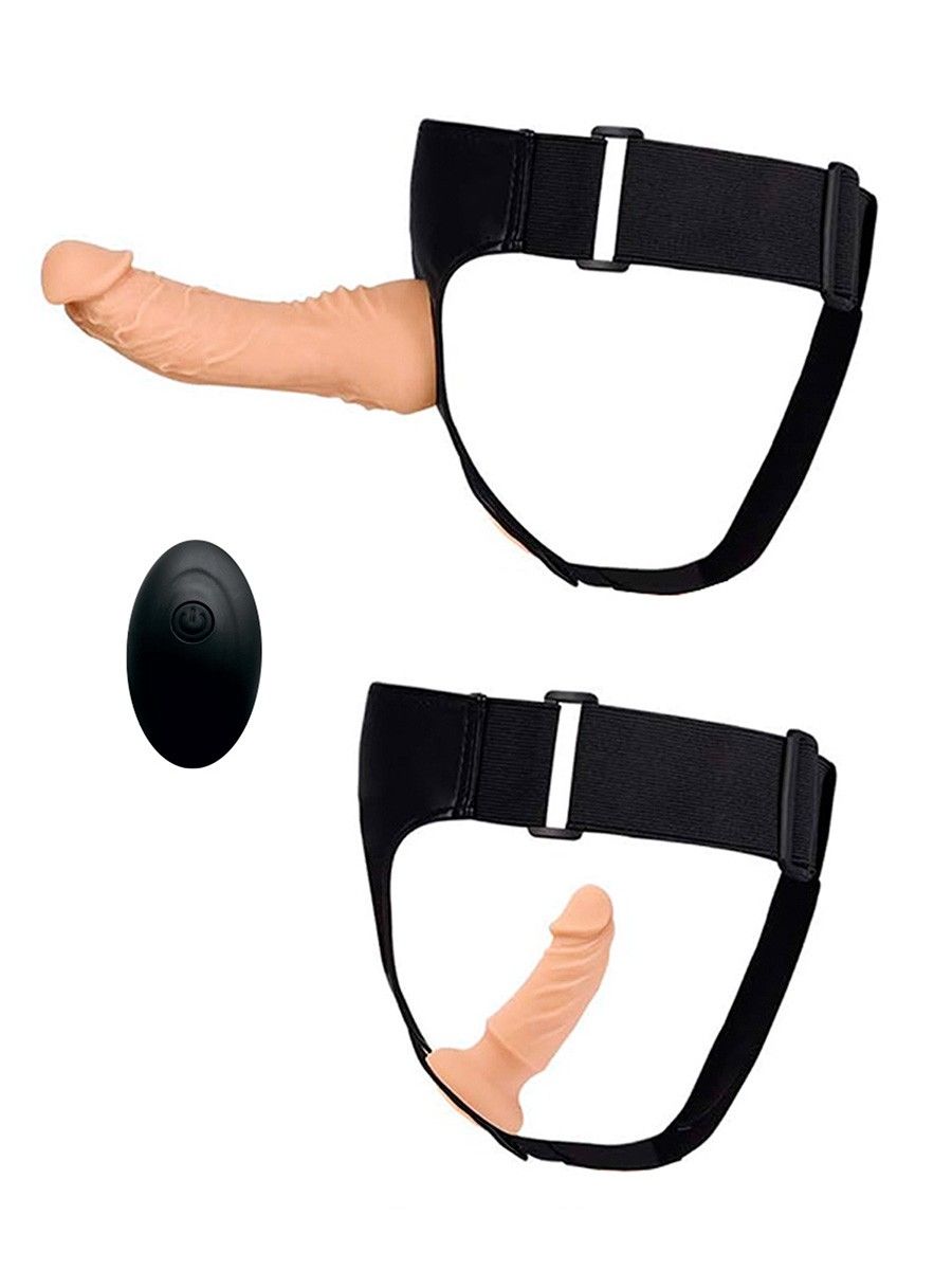 Женский страпон с 2 насадками, вибрацией и пультом ДУ