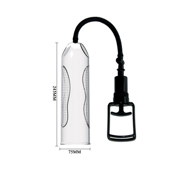 Вакуумная помпа с вибрацией, выполненная из прозрачного материала. Воздух откачивается при помощи вакуумного шланга удобным механизмом откачки. Механизм вибрации крепится к помпе с помощью эластичного материала с кармашком для виброяичка, которое управляется выносным пультом. В набор входит также насадка для помпы в виде вагины, изготовленная из TPE, мягкая и реалистичная. Диаметр отверстия насадки в не растянутом состоянии - 2,7 см.