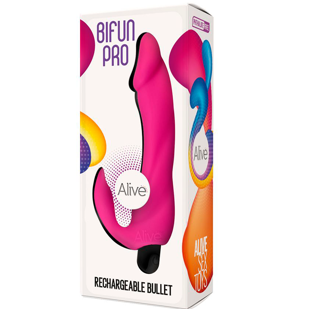 Идеально изогнутая форма перезаряжаемого вибратора Bifun Pro одновременно стимулирует зону G, влагалище и клитор. Эффект усиливает 1 мощный моторчик и 10 режимов вибрации. Общая длина игрушки - 15 см, длина рабочей зоны - 10 см, диаметр - 3 см.
