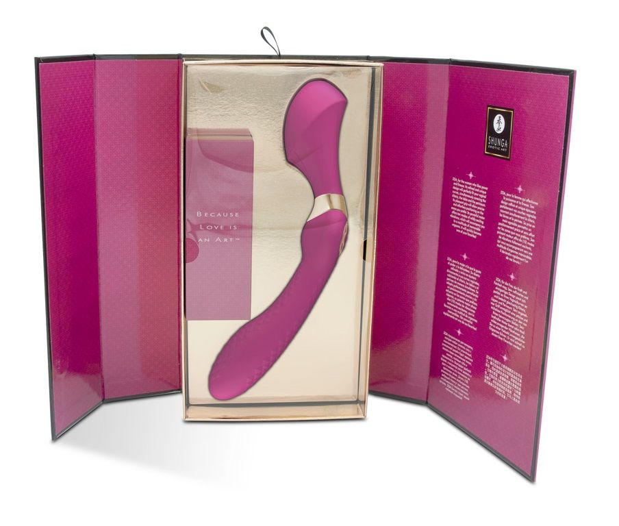 Двухсторонний вибратор Shunga ZOA малиновый - 26,5 см