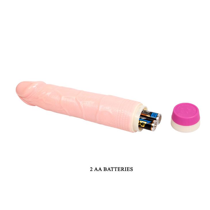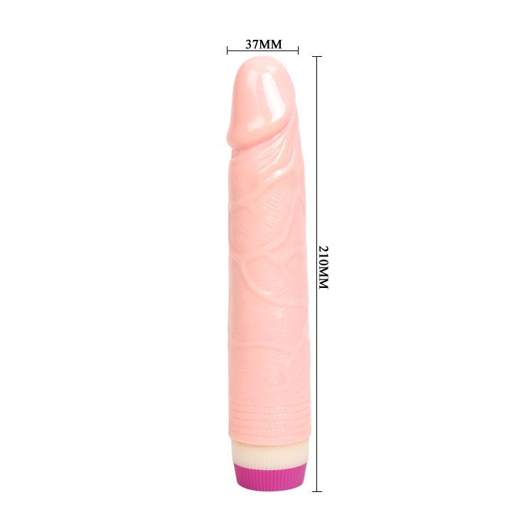 Вибратор телесного цвета. Имеет форму члена с ярко-выраженной головкой. Рельефный, выполненный из материала ПВХ. Скорость вибрации регулируется кнопкой у основания изделия. Рабочая длина - 19 см.