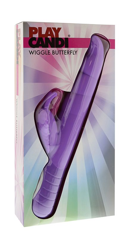 Фиолетовый вибромассажер с клиторальным стимулятором в виде бабочки PLAY CANDI WIGGLE BUTTERFLY - 17 см.