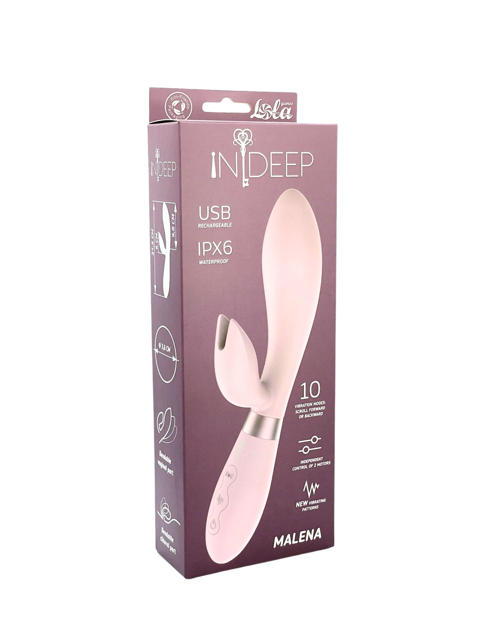 Вибратор Indeep Pro Malena оснащен двумя моторами, которые могут работать как вместе, так и отдельно друг от друга. В каждом из них по 10 уникальных режимов вибрации, продуманных специально для развития вагинального оргазма. Функция отматывания режимов назад позволит легко вернуться назад при необходимости.