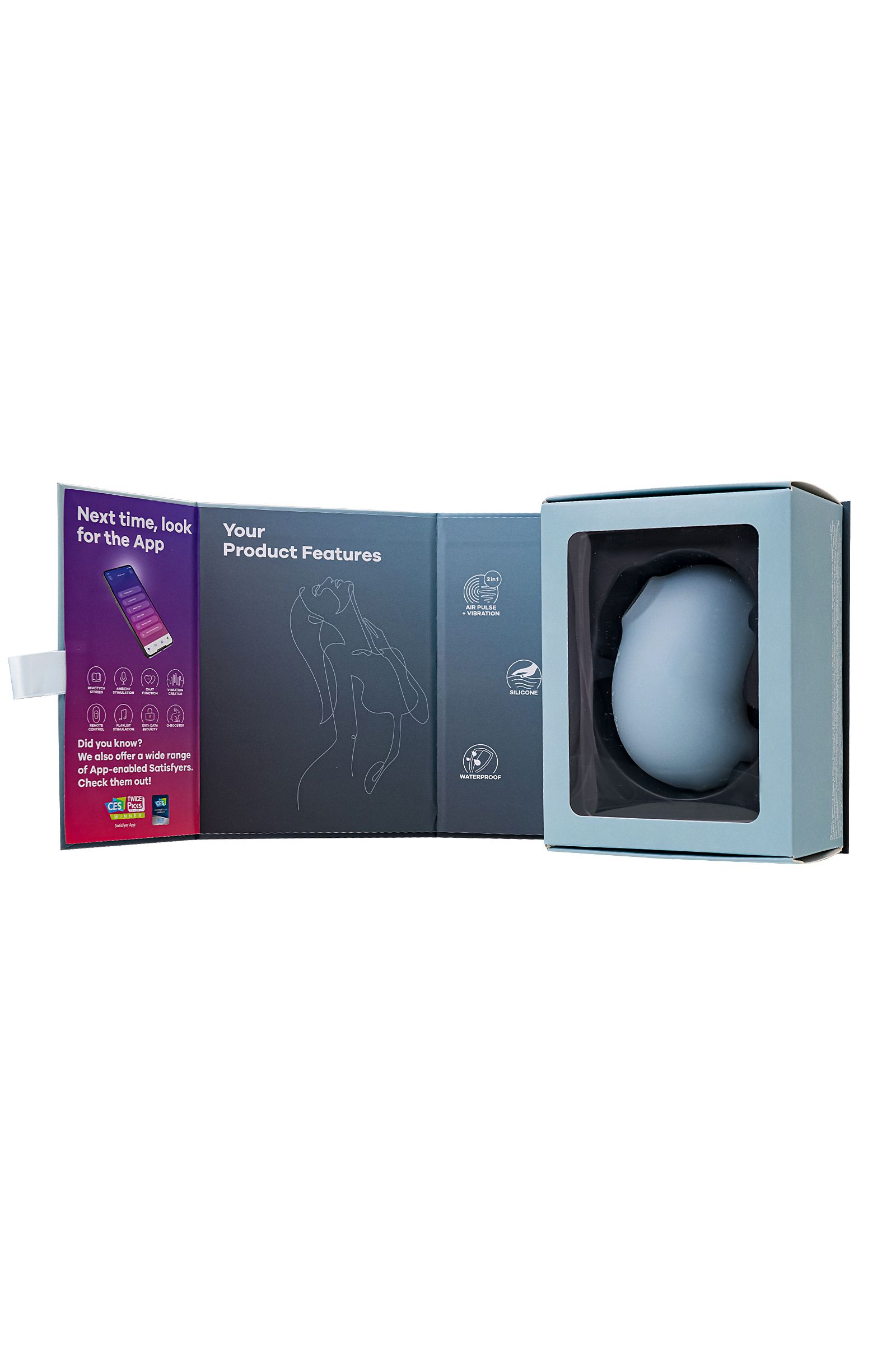 Полностью водонепроницаемый стимулятор можно брать с собой в душ или ванную, однако не рекомендуется держать игрушку в воде дольше 30 минут. Нежно-голубой силикон девайса совместим с лубрикантами только на водной основе. Заряжается через магнитный USB кабель. Очищать мыльным раствором или сперем для игрушек.