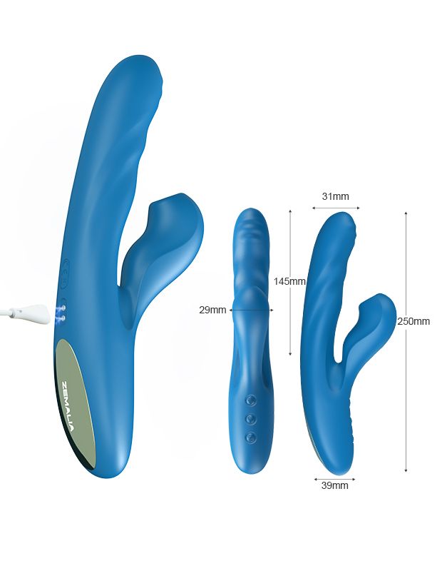 Голубой вибратор Otto с возвратно-поступательными движениями, вакуумом и подогревом - 22,2 см.