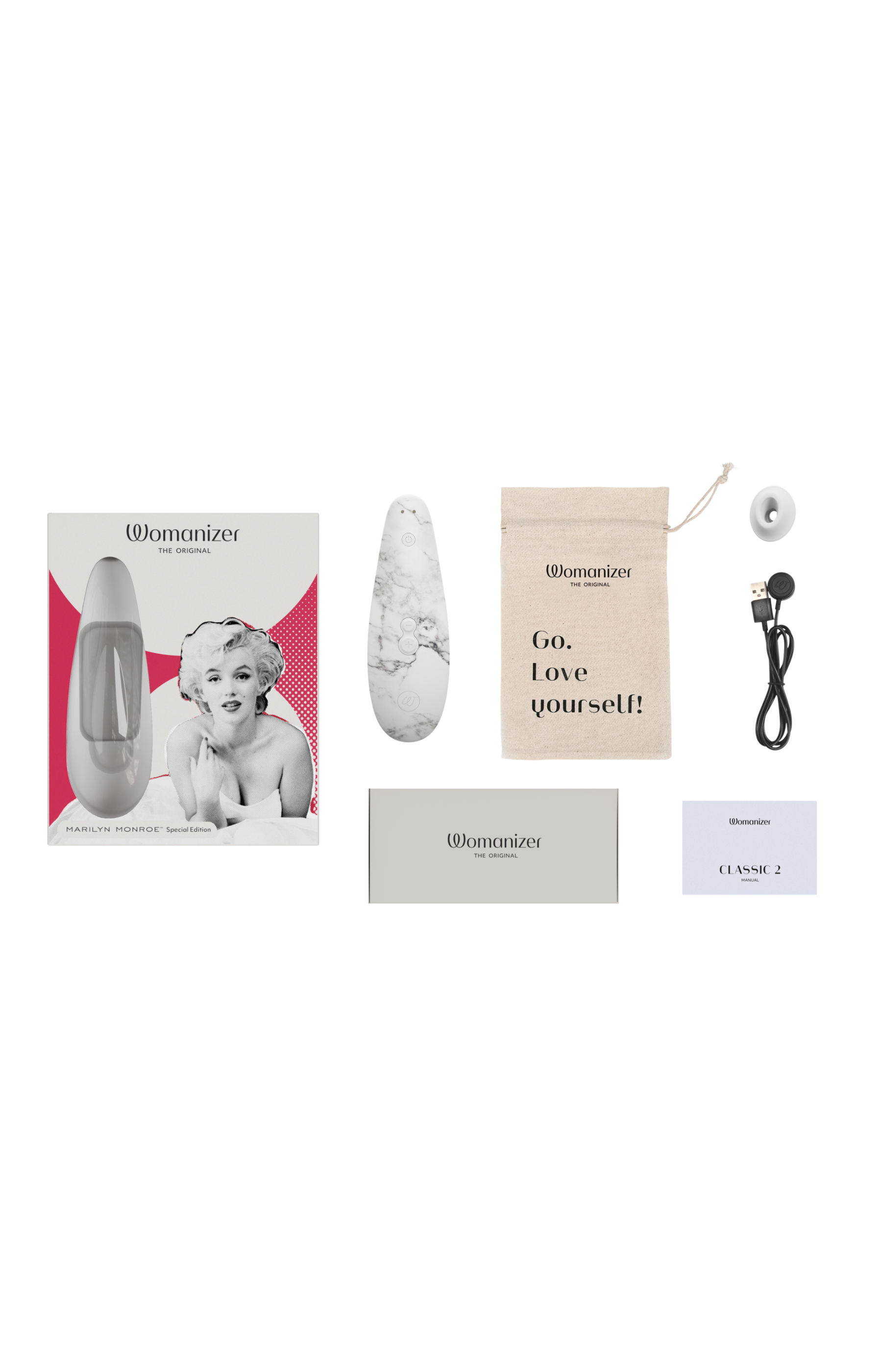 Бесконтактный клиторальный стимулятор Womanizer Classic 2 Marilyn Monroe белый мрамор купить со скидкой в секс шопе - lovestoryshop.ru