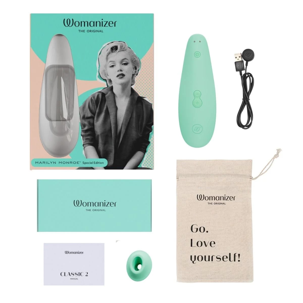 Бесконтактный клиторальный стимулятор Womanizer Classic 2 Marilyn Monroe мятный купить со скидкой в секс шопе - lovestoryshop.ru