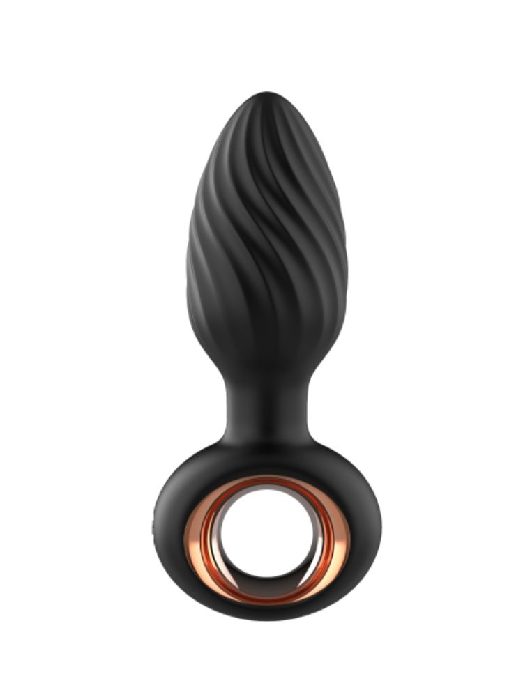 Черная анальная пробка с вибрацией, вращением и пультом ДУ - lovestoryshop.ru