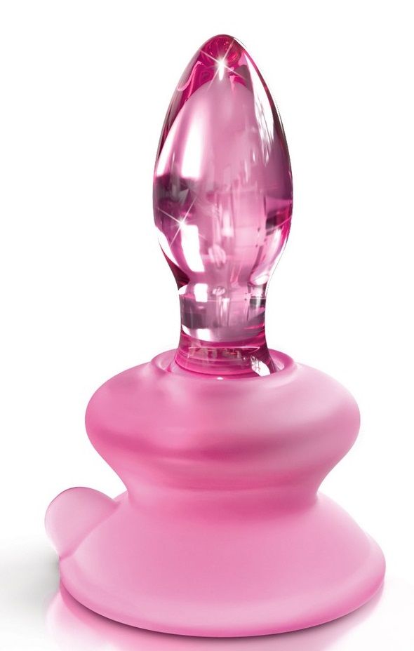 Розовая стеклянная пробка Icicles №90 с силиконовой присоской - 8 см.