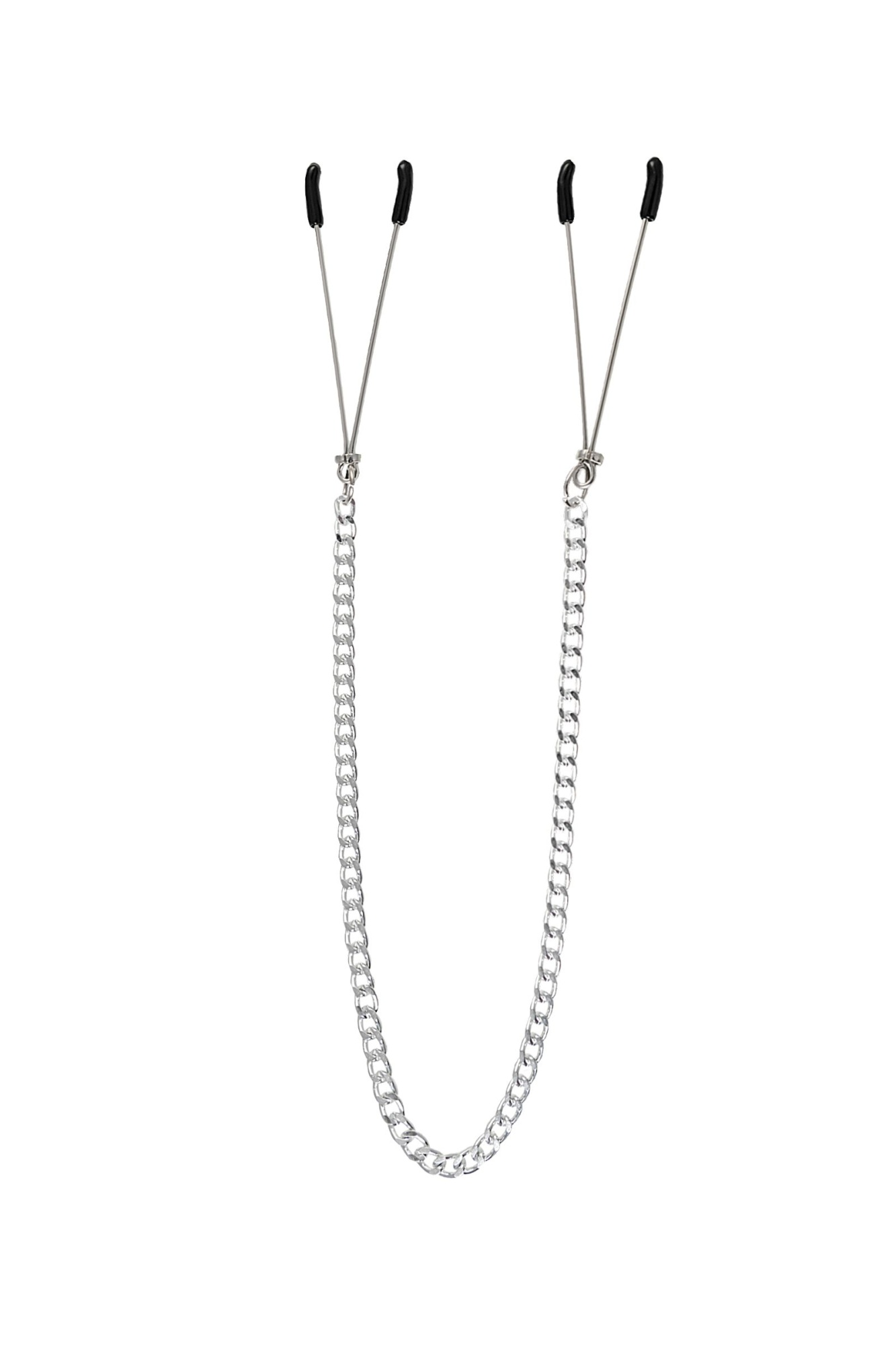 Аксессуар из премиальных материалов подарит непередаваемую, взрывную гамму чувств. Соприкосновение холодного металла с нежной кожей сосков будоражит сознание. Основная, стальная часть атрибута компактная, тактильно приятная и ее удобно держать в руке. На концах черные резиновые наконечники, для безопасного воздействия на эрогенные зоны. Силу сжатия легко регулировать с помощью мини колец. В зависимости от личных предпочтений и сценария игры, можно выбрать легкое пощипывание, или сильное сдавливание. Подходят как женщинам, так и мужчинам. Зажимы соединены крепкой цепочкой. При каждом ритмичном покачивании груди, цепочка эротично движется и игриво звенит. А если за нее нежно потянуть, то можно увеличить бурлящий коктейль чувств от стимуляции. Общая длина зажимов - 7см.