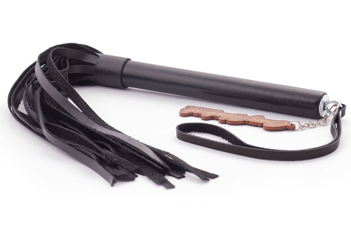 -----Черная кожаная плеть Индиго - 50 см.