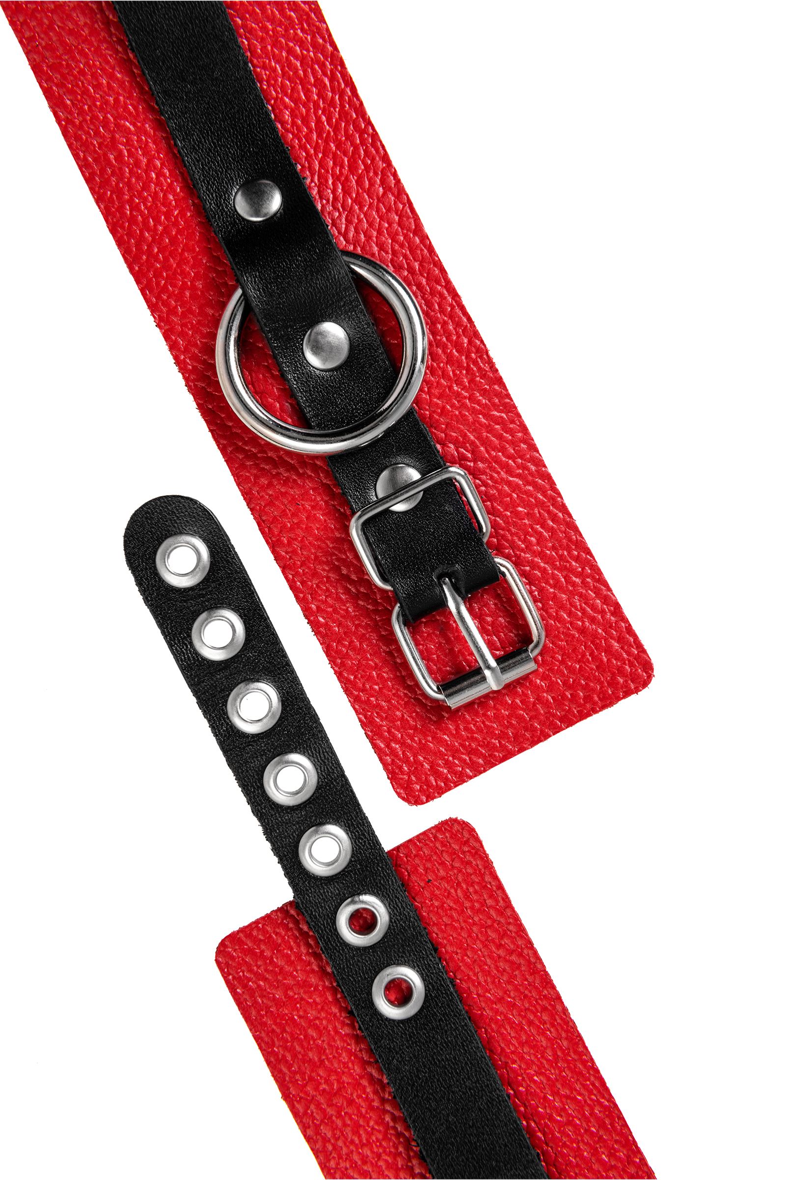 Красно-черные мягкие оковы с одним ремешком и люверсами - lovestoryshop.ru