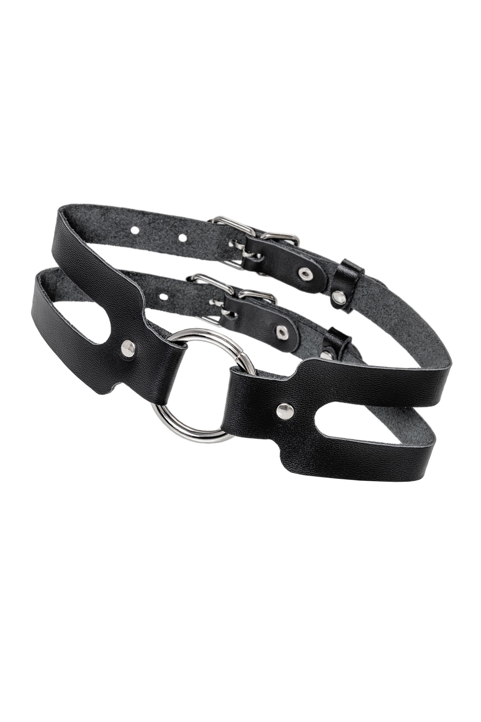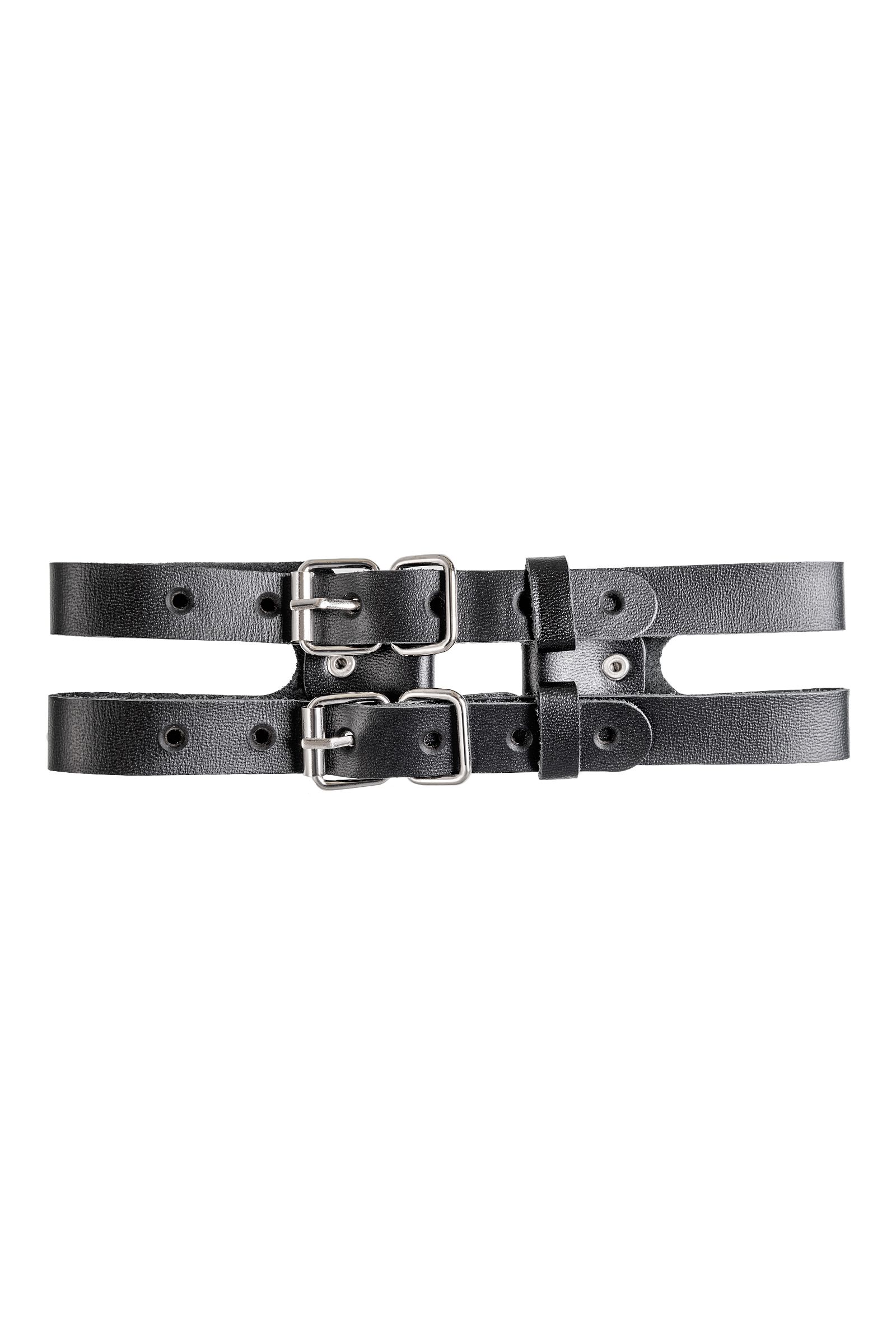 Черный кожаный чокер-ошейник из двух ремешков - lovestoryshop.ru
