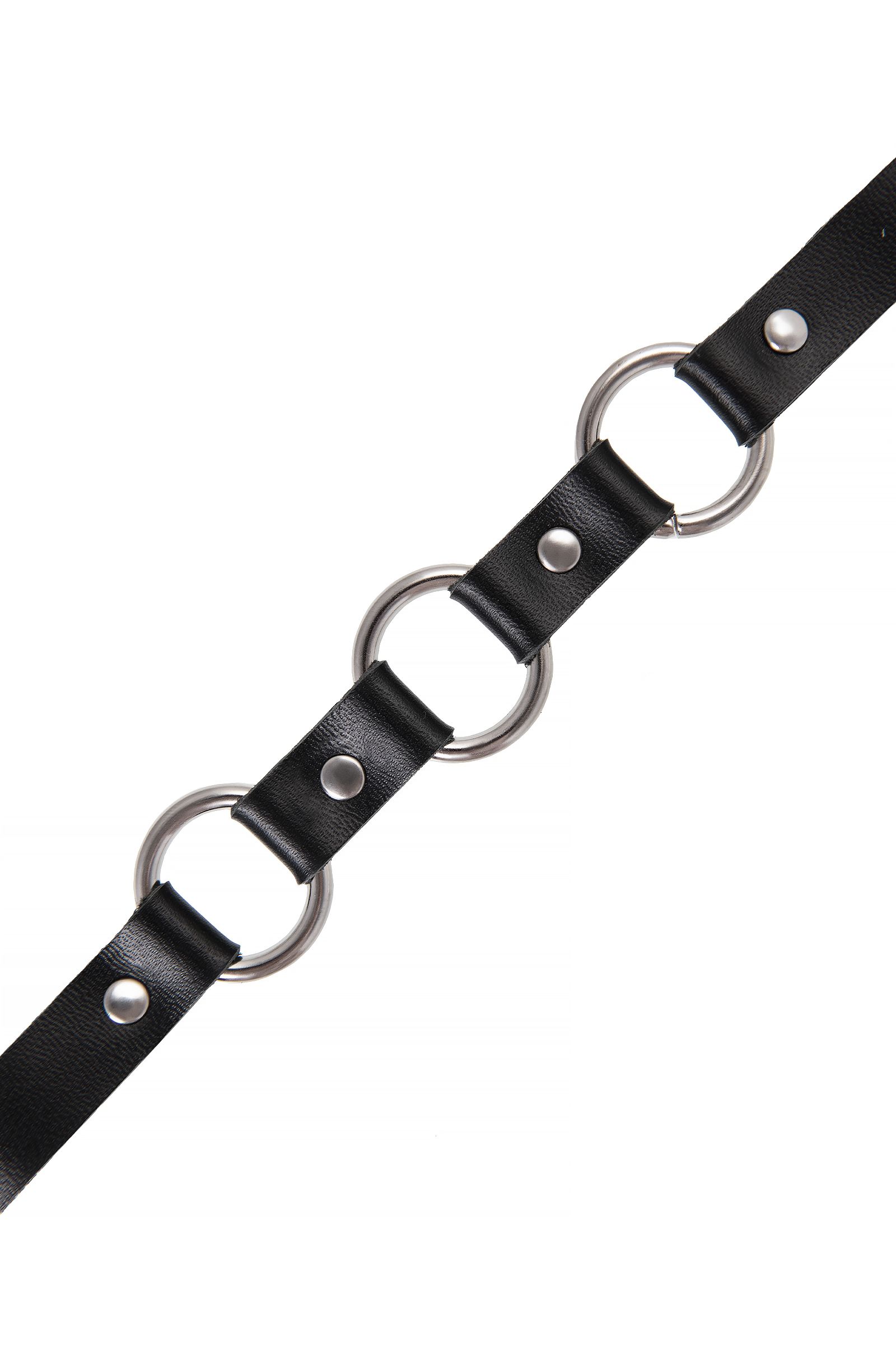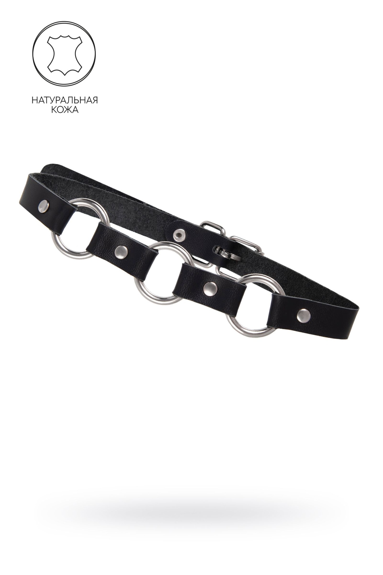 Черный кожаный чокер-ошейник с тремя кольцами
