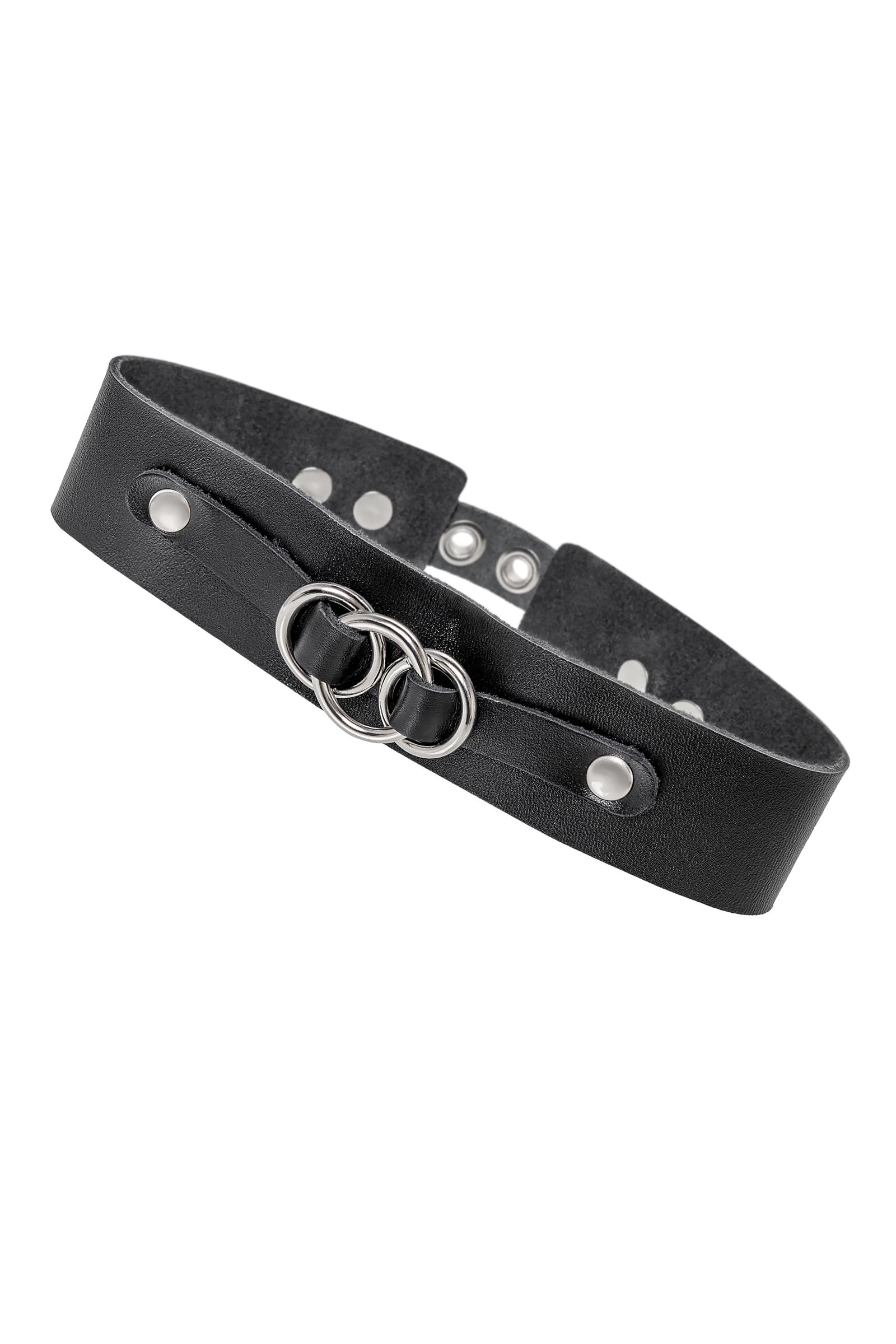 Черный чокер-ошейник со связанными кольцами на подложке - lovestoryshop.ru