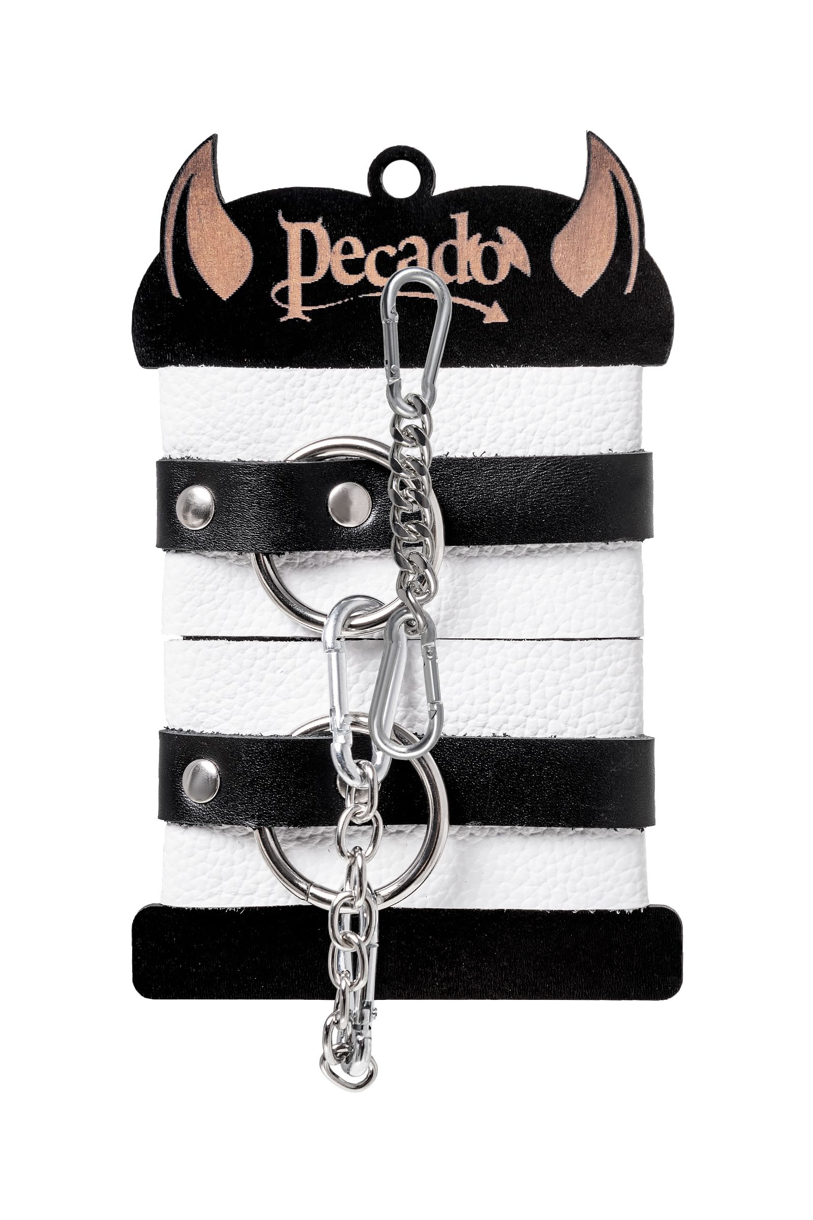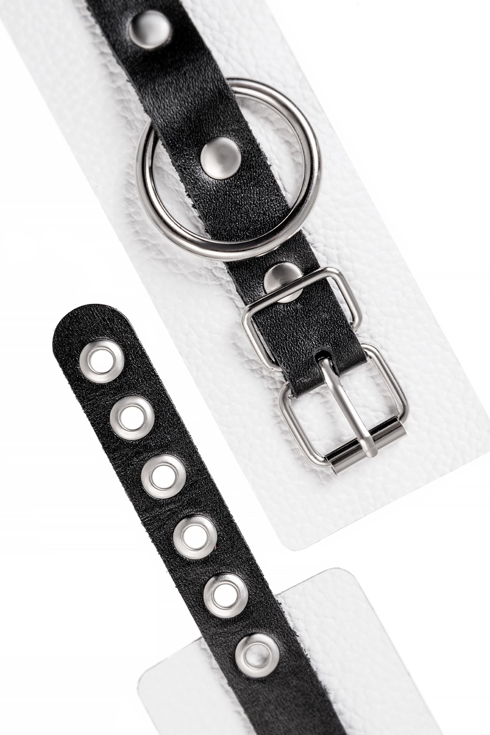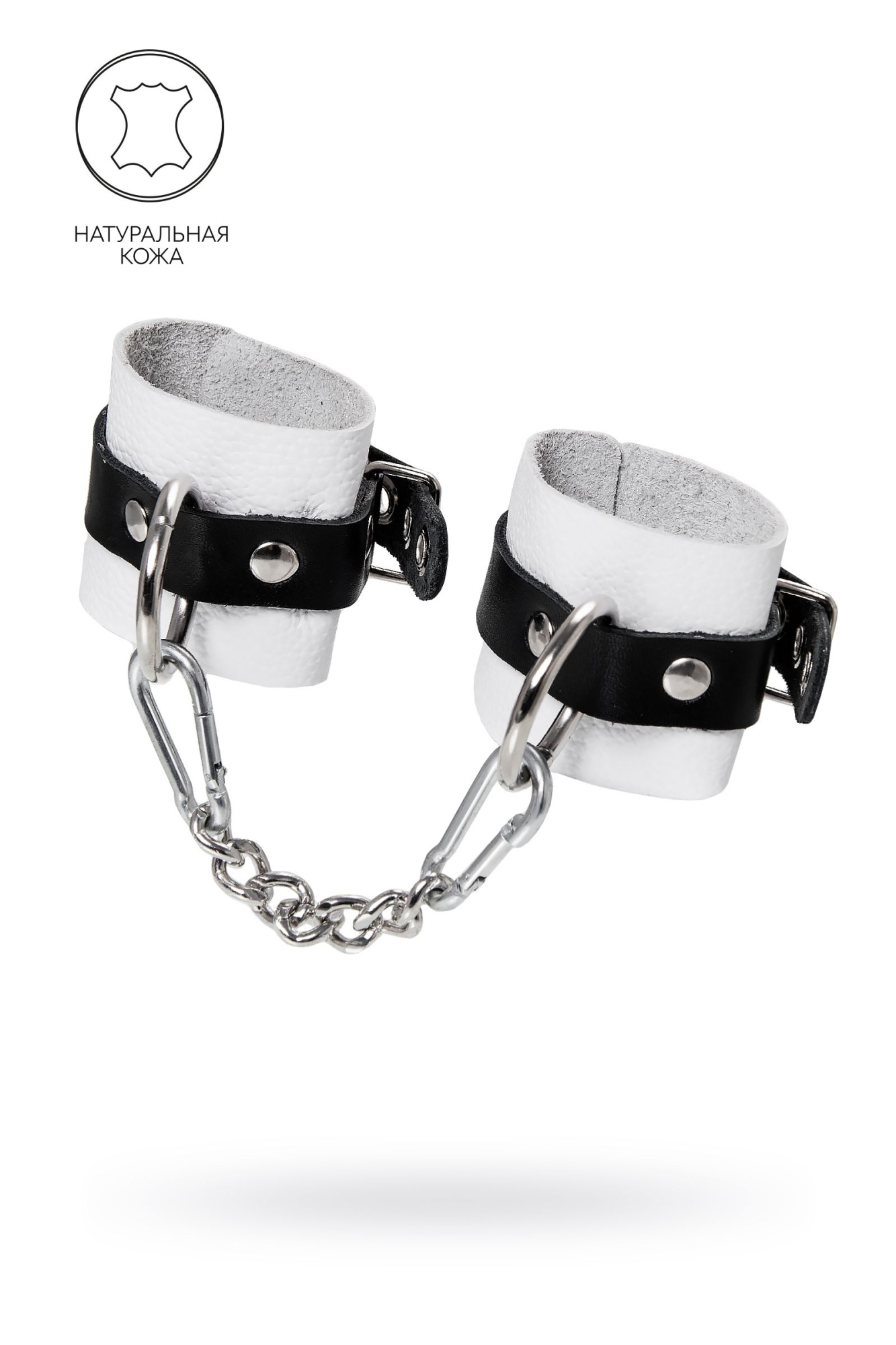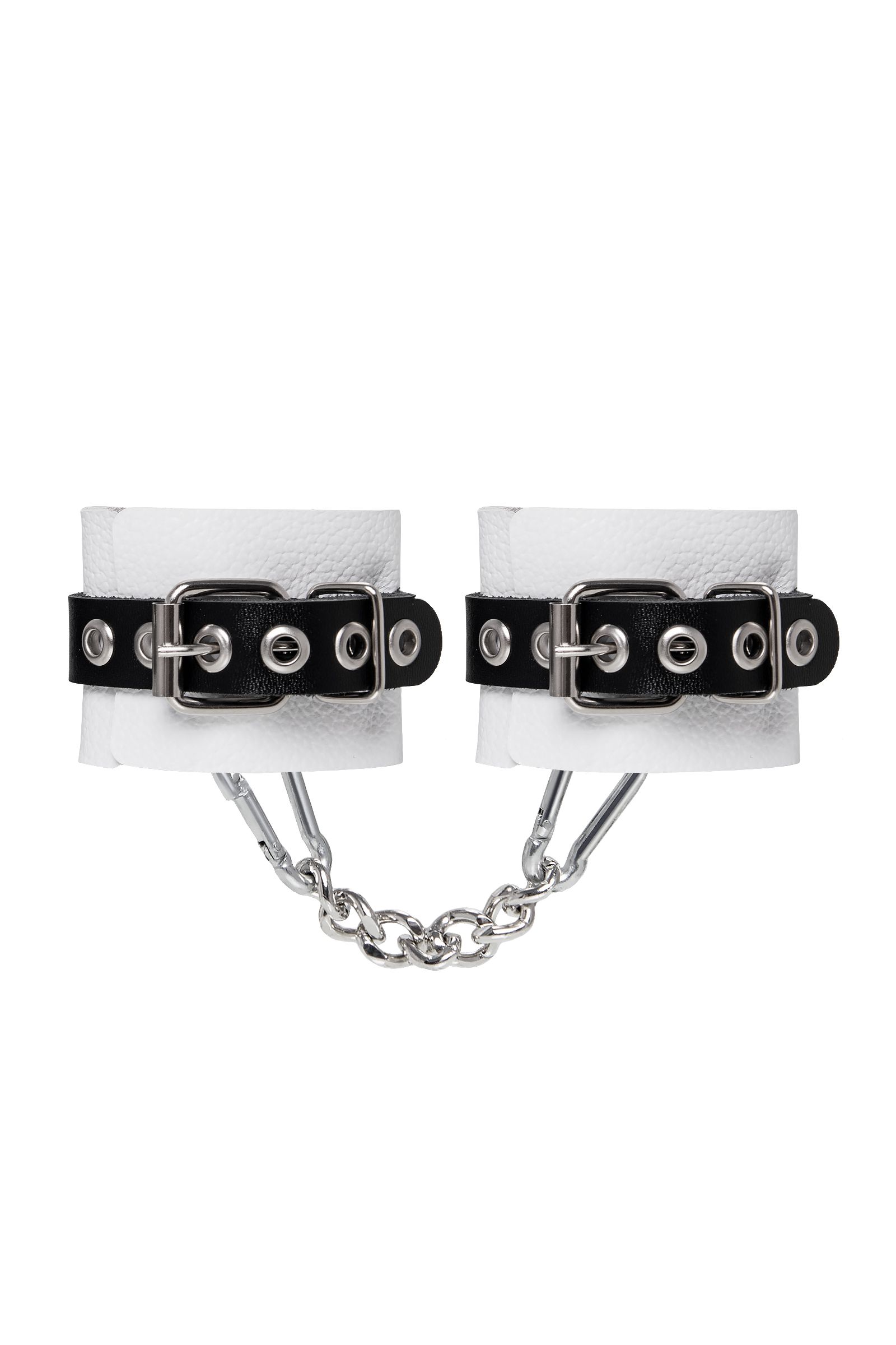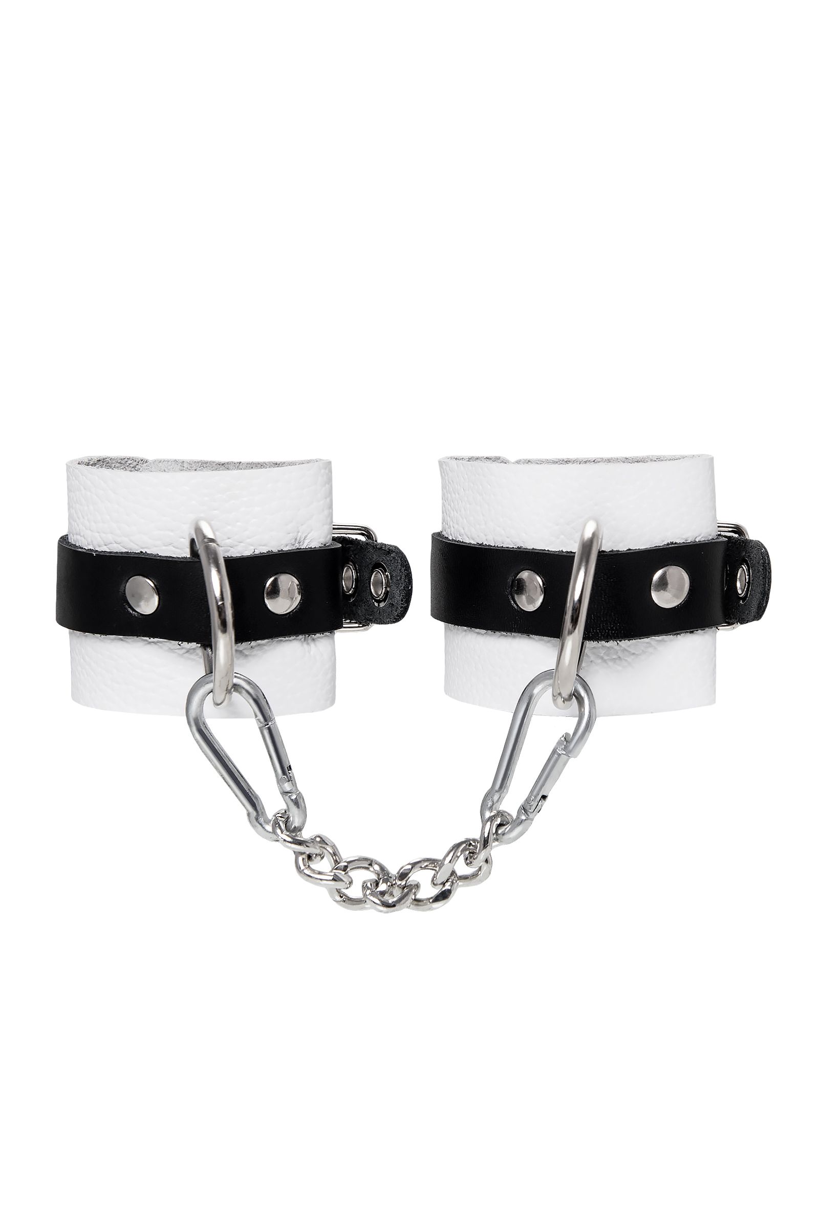 Бело-черные кожаные наручники с одним ремешком с люверсами - lovestoryshop.ru