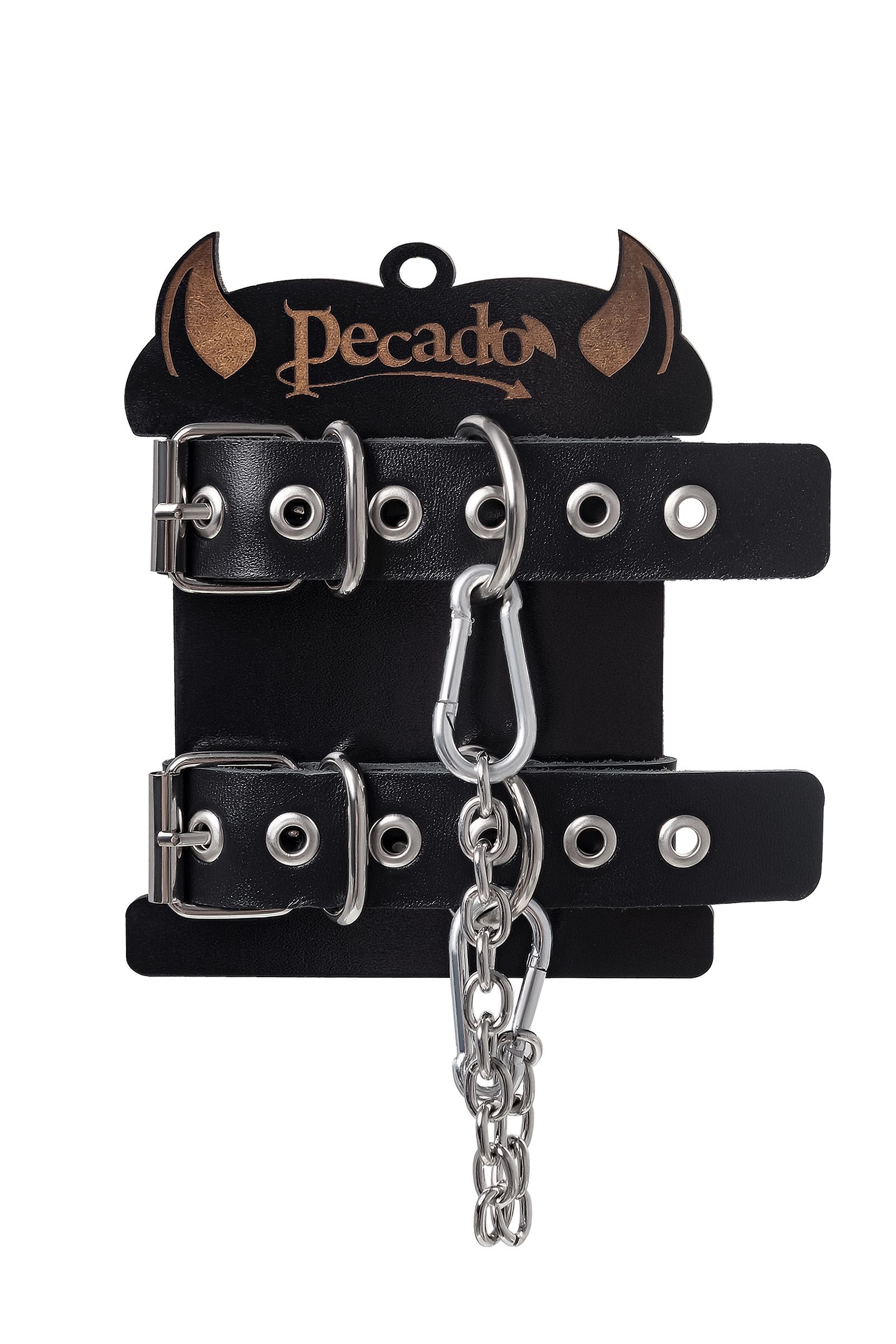 Оковы из одного ремешка от Pecado - отличный помощник, чтобы обездвижить партнера. Материал атрибута – 100% натуральная и прочная кожа. Благодаря полностью ручной работе оковы дарят особую атмосферу ролевым играм. Оковы надежно захватывают щиколотки ног. Не оставляют следов на теле. Пять крепких люверсов на каждом ремешке и замок помогают легко расстёгивать и застегивать девайс. Манжеты оков соединяются между собой металлической цепью, которая легко снимается. Длина ремешка – 31,5 см, ширина - 2,5 см.