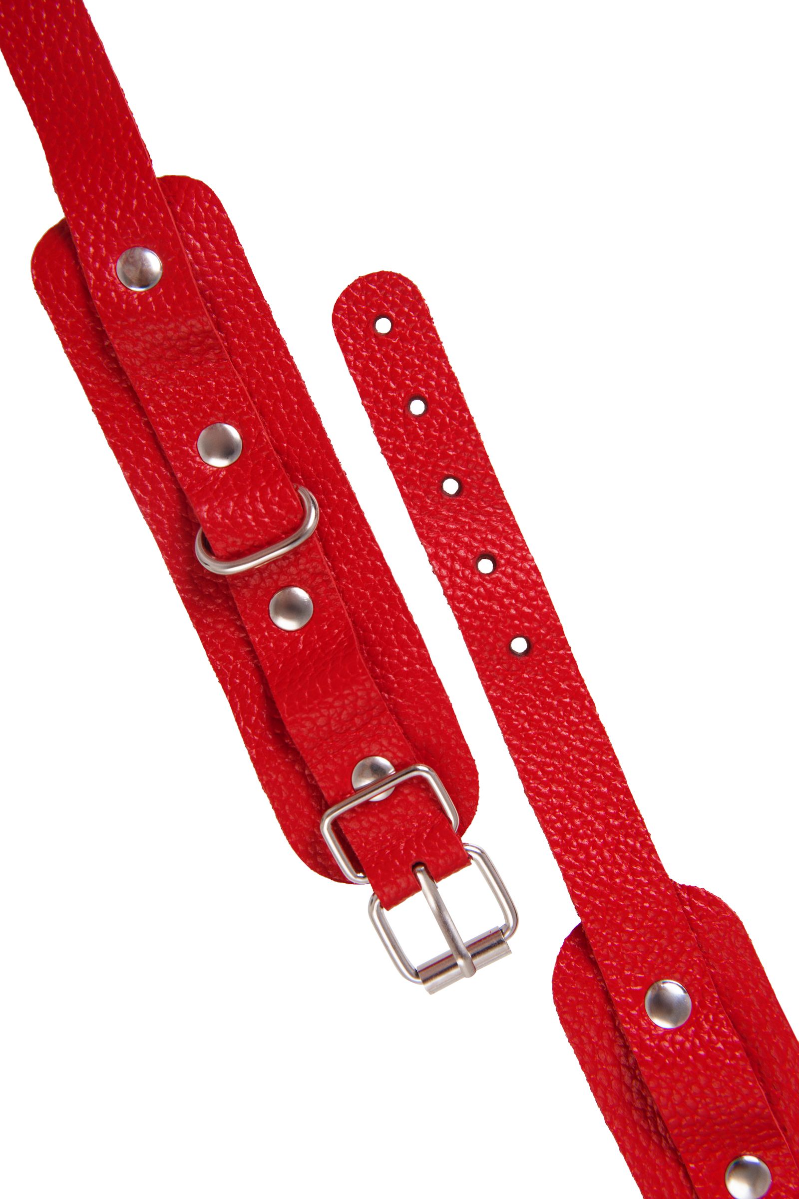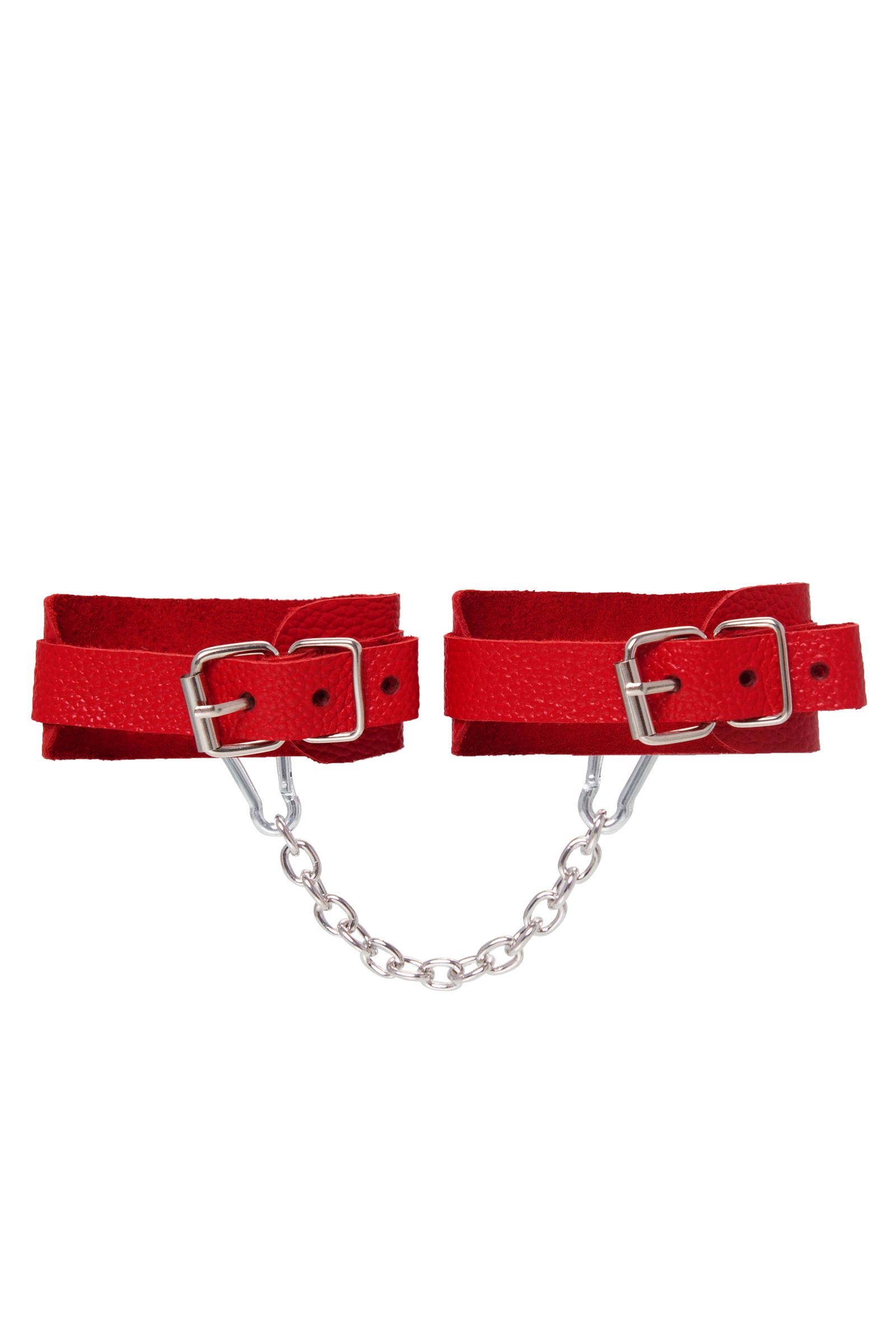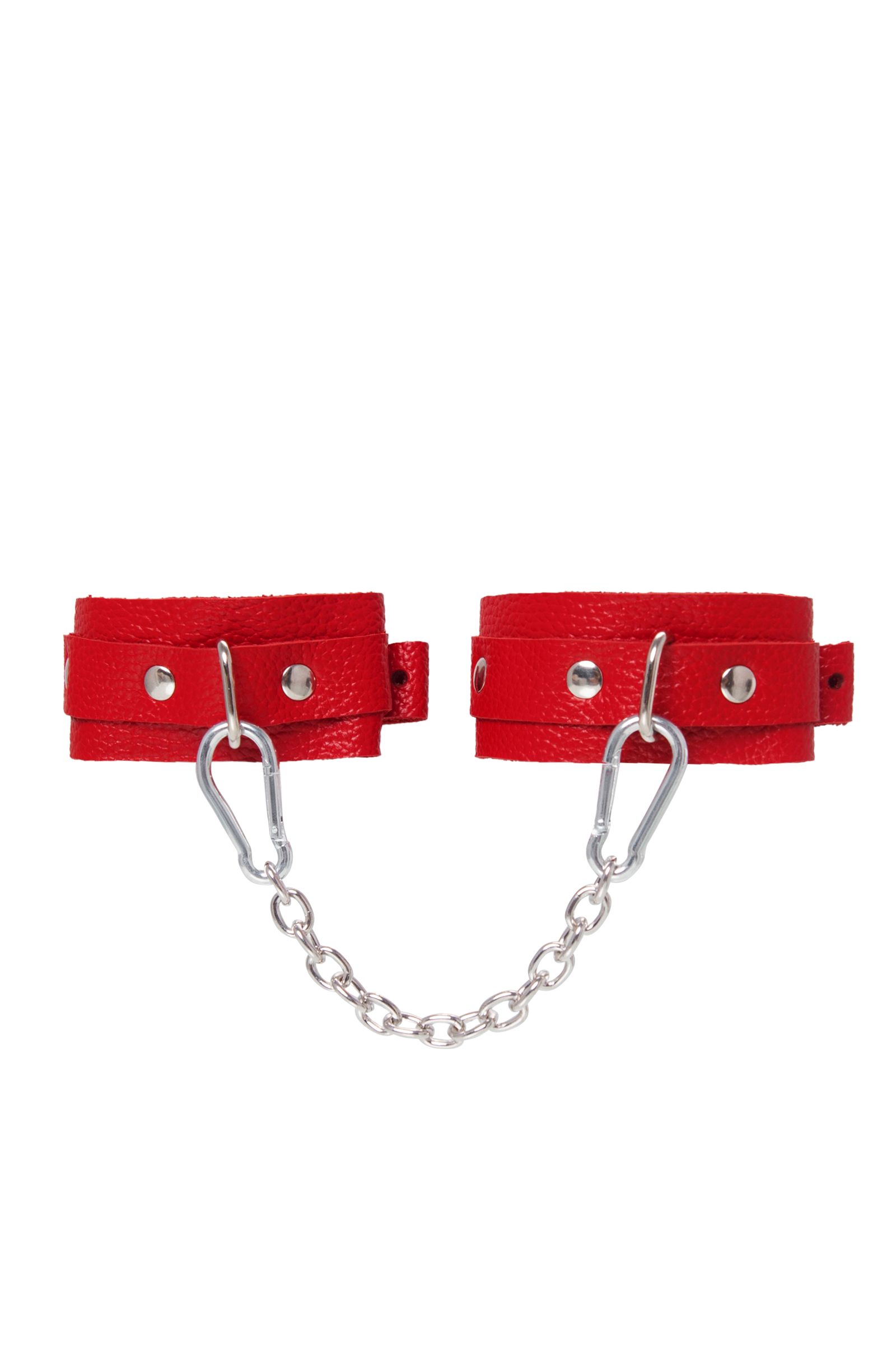 Красные кожаные узкие оковы со скруглёнными углами - lovestoryshop.ru