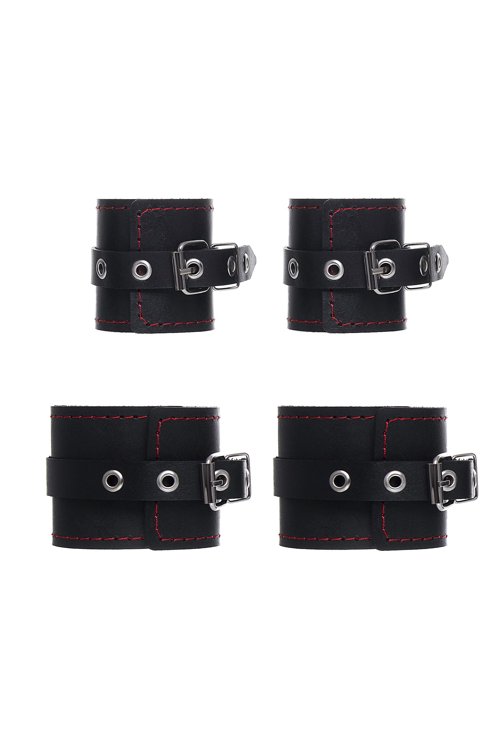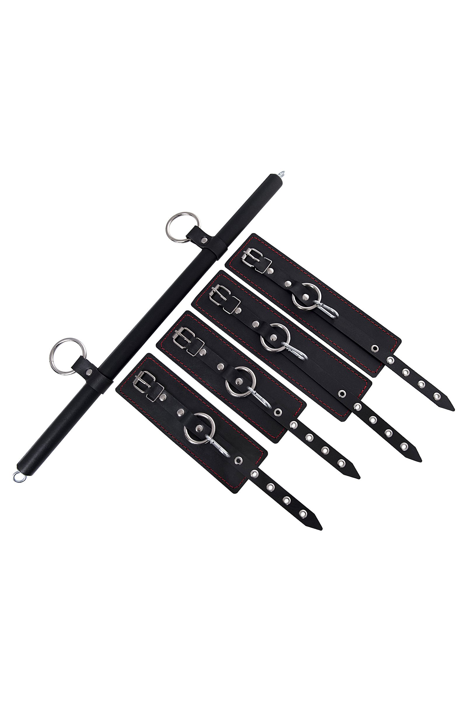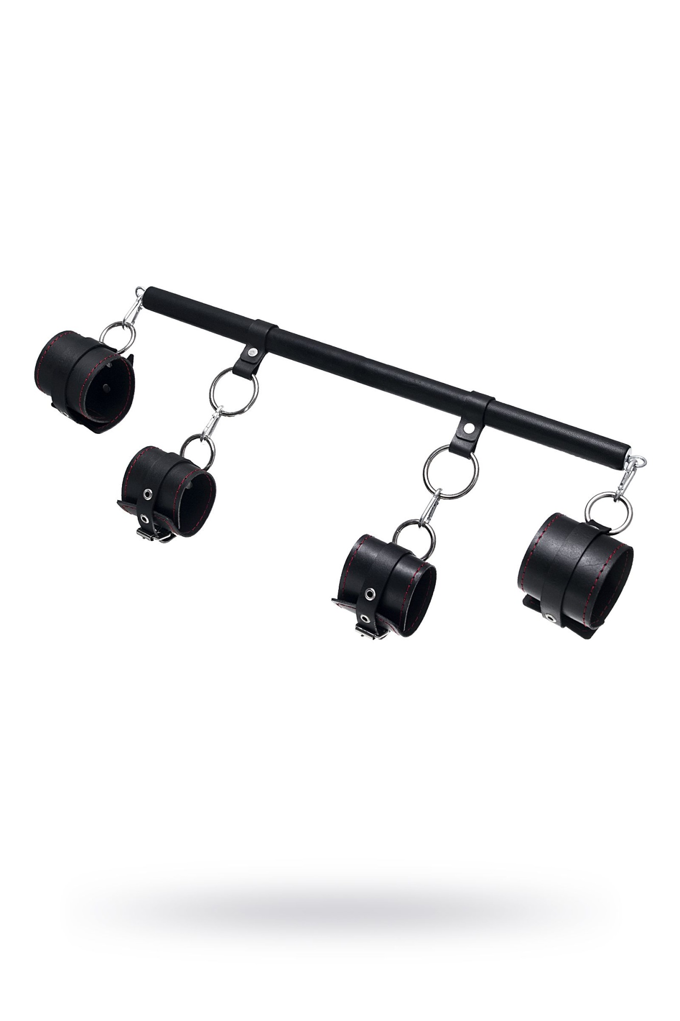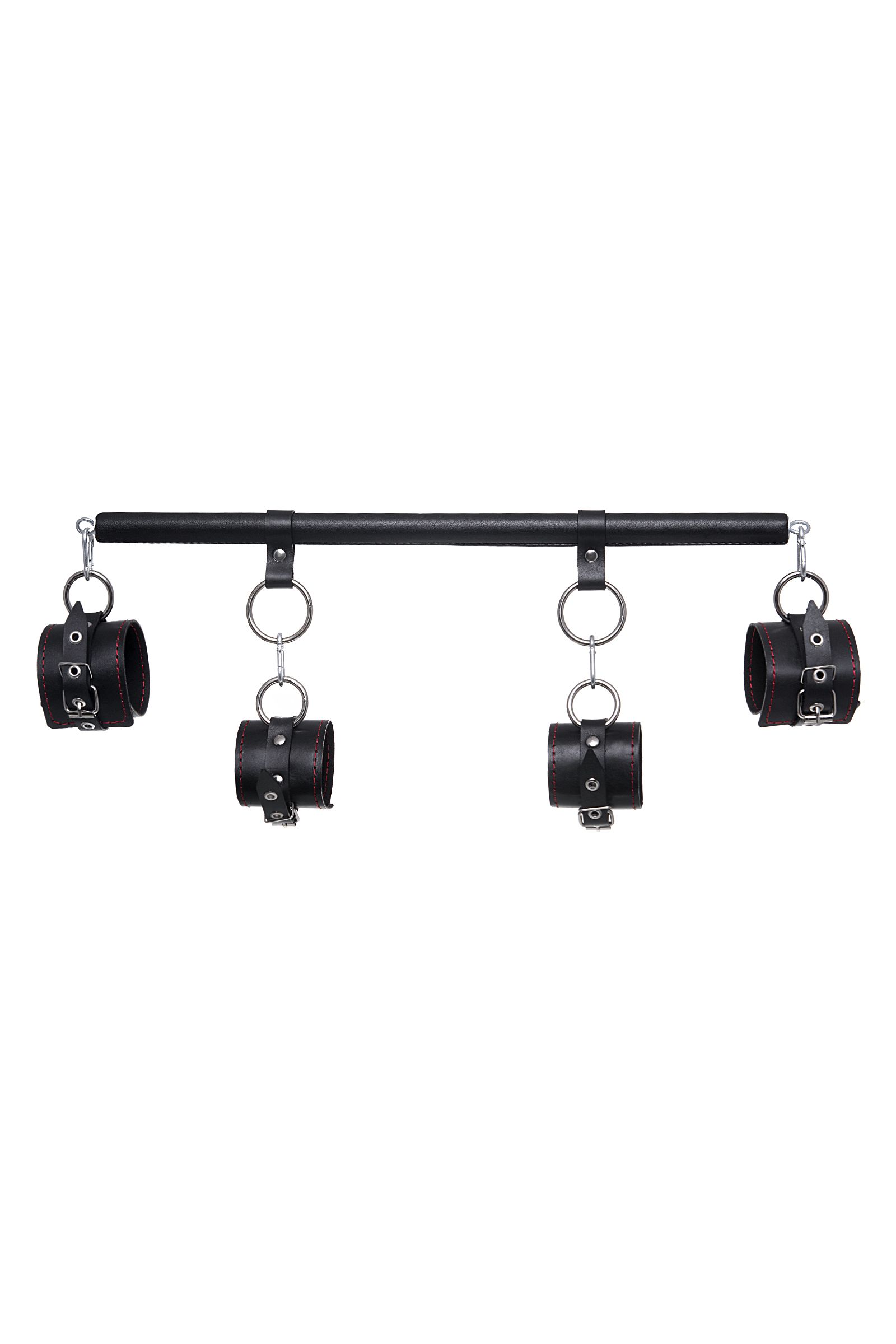 Черная распорка с 4 манжетами для рук и ног - lovestoryshop.ru